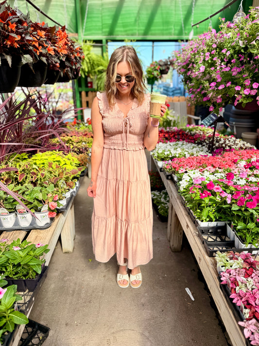 The Elara Tiered Midi Dres - Dusty Pink