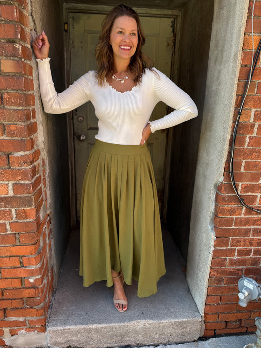 Everflow Box Pleated Midi Skirt