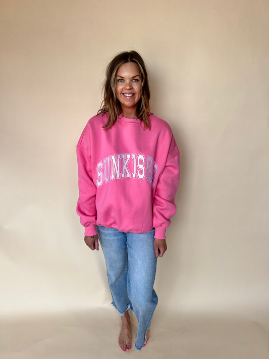 Pink Hibiscus Sunkissed Varsity Sweatshirt