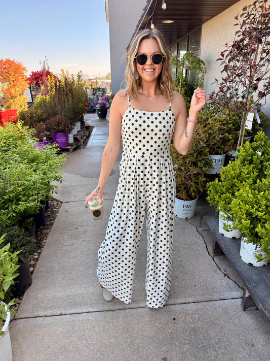 Polka Dot Smocking Tank Top Wide Leg Jumpsuit