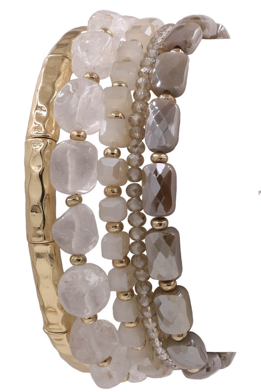 Water Resistant Set of 6 Silver Beaded Stretch Bracelets