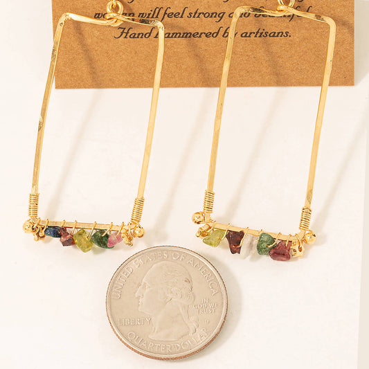 Mixed Stone Beads Rectangle Dangle Earrings: GOLD