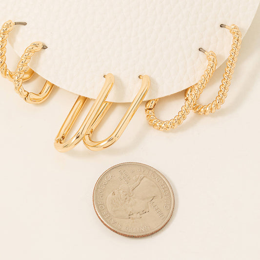 Mixed Metallic Hoop Earrings Set