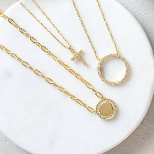 Open Pave Circle Pendant: Gold