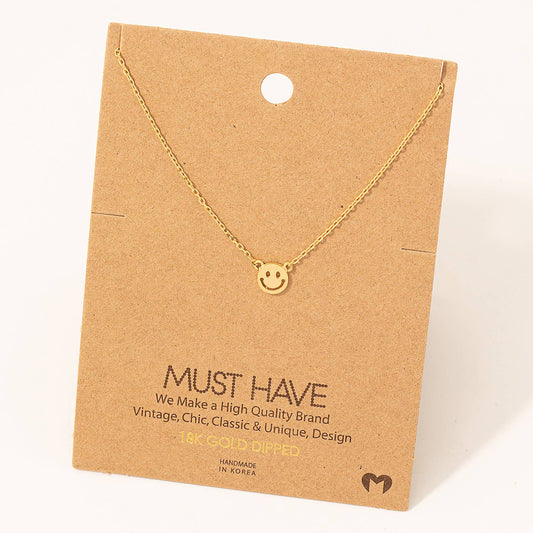 Mini Smiley Face Charm Necklace: Gold