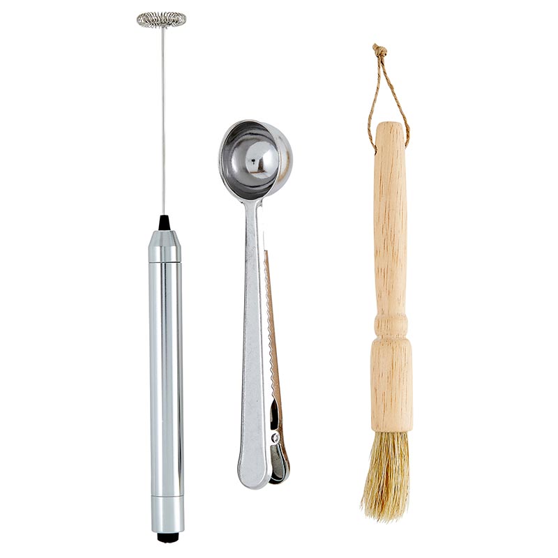 Make the perfect coffee at home with our new Barista set. This set includes a frother to blend cream or milk, coffee bag clip with scoop and a brush for cleaning any coffee grinder. The ideal gift for any coffee enthusiast.