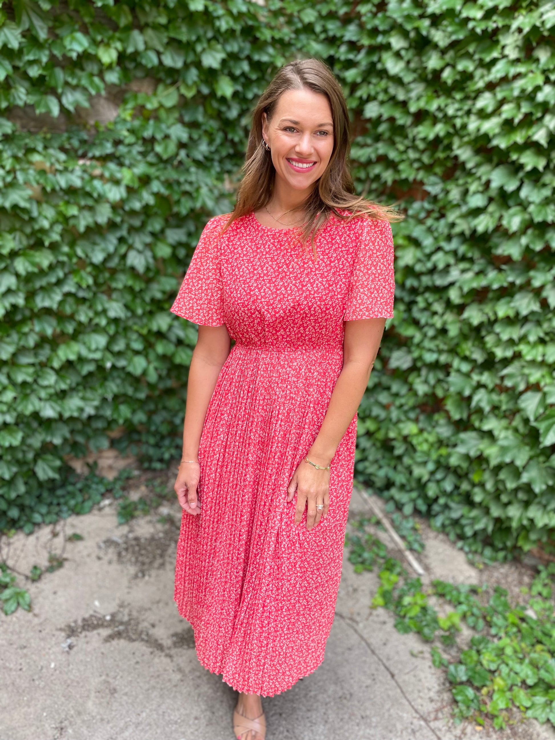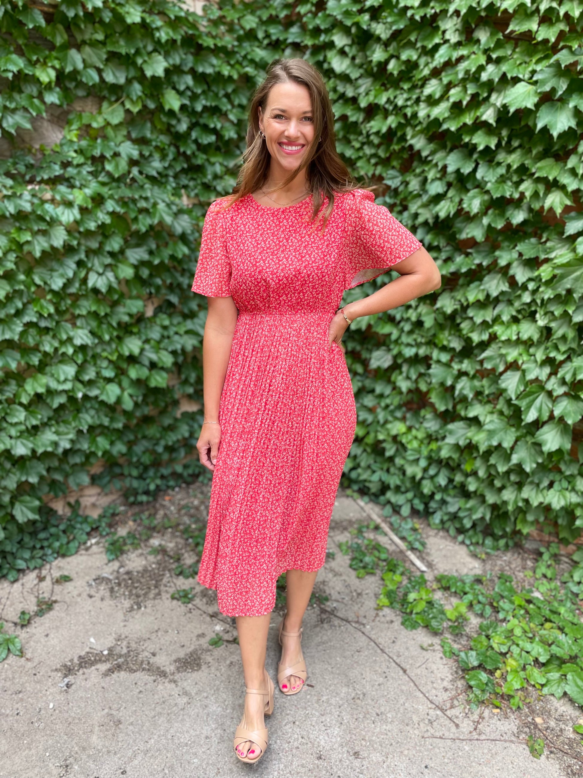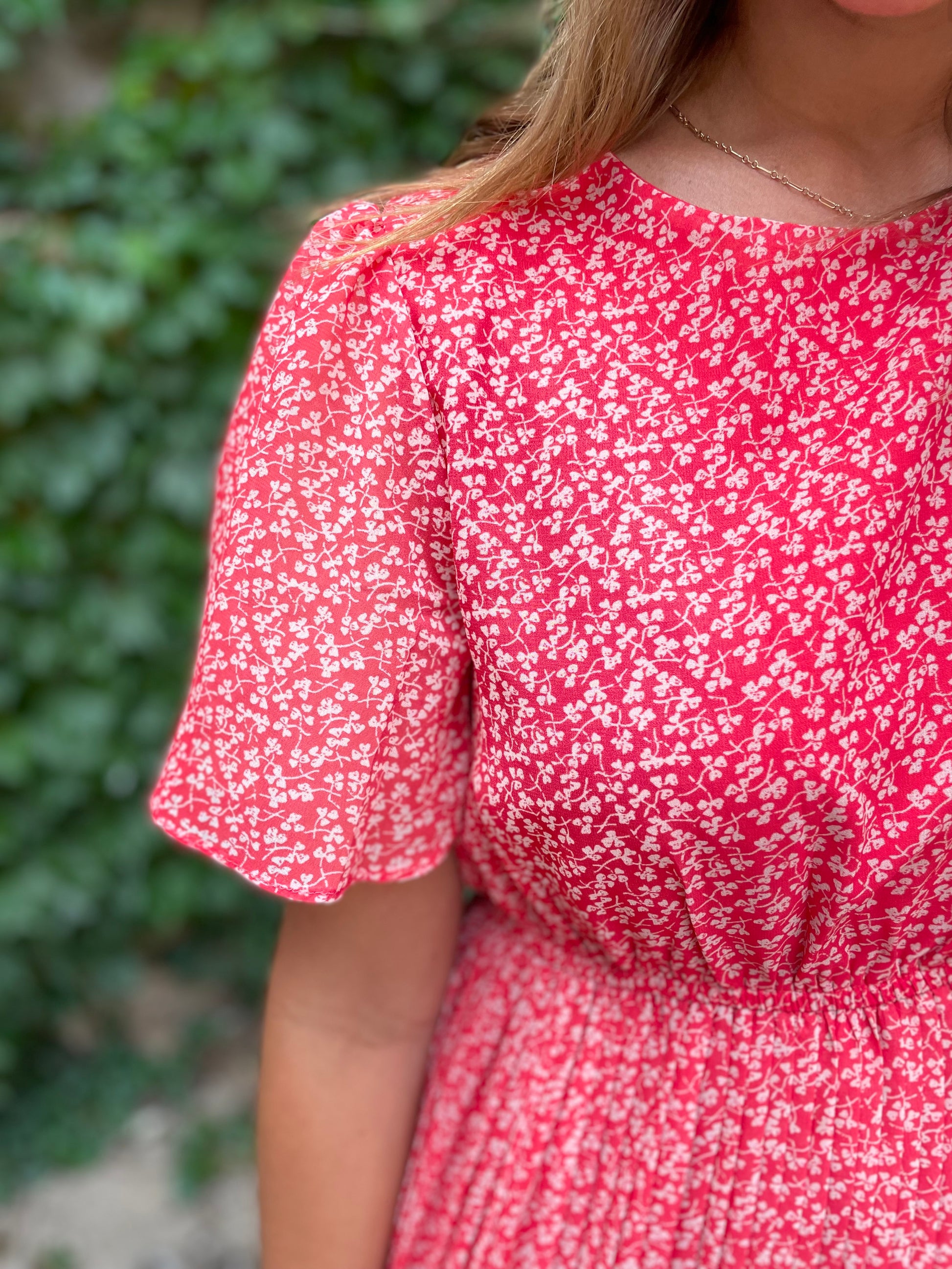Indulge in boldness with the daring Bender Dress. Crafted from a delicate ditsy floral material, this dress boasts pleated short sleeves and a smocked waist for a figure-flattering silhouette. The back keyhole closure adds the finishing touch. Embrace risks and make a statement in the Bender Dress.