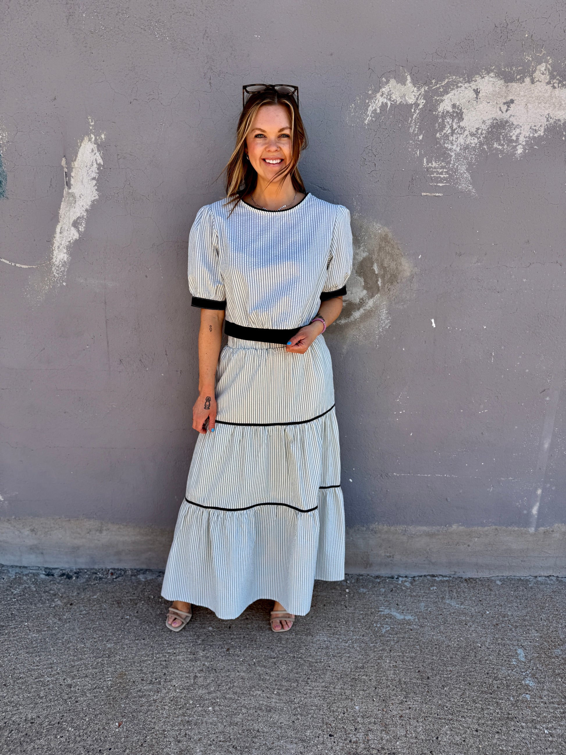 The neutral tones make it ideal for transitioning from sunny brunches to seaside dinners, outdoor gatherings, or a coordinated weekend look.