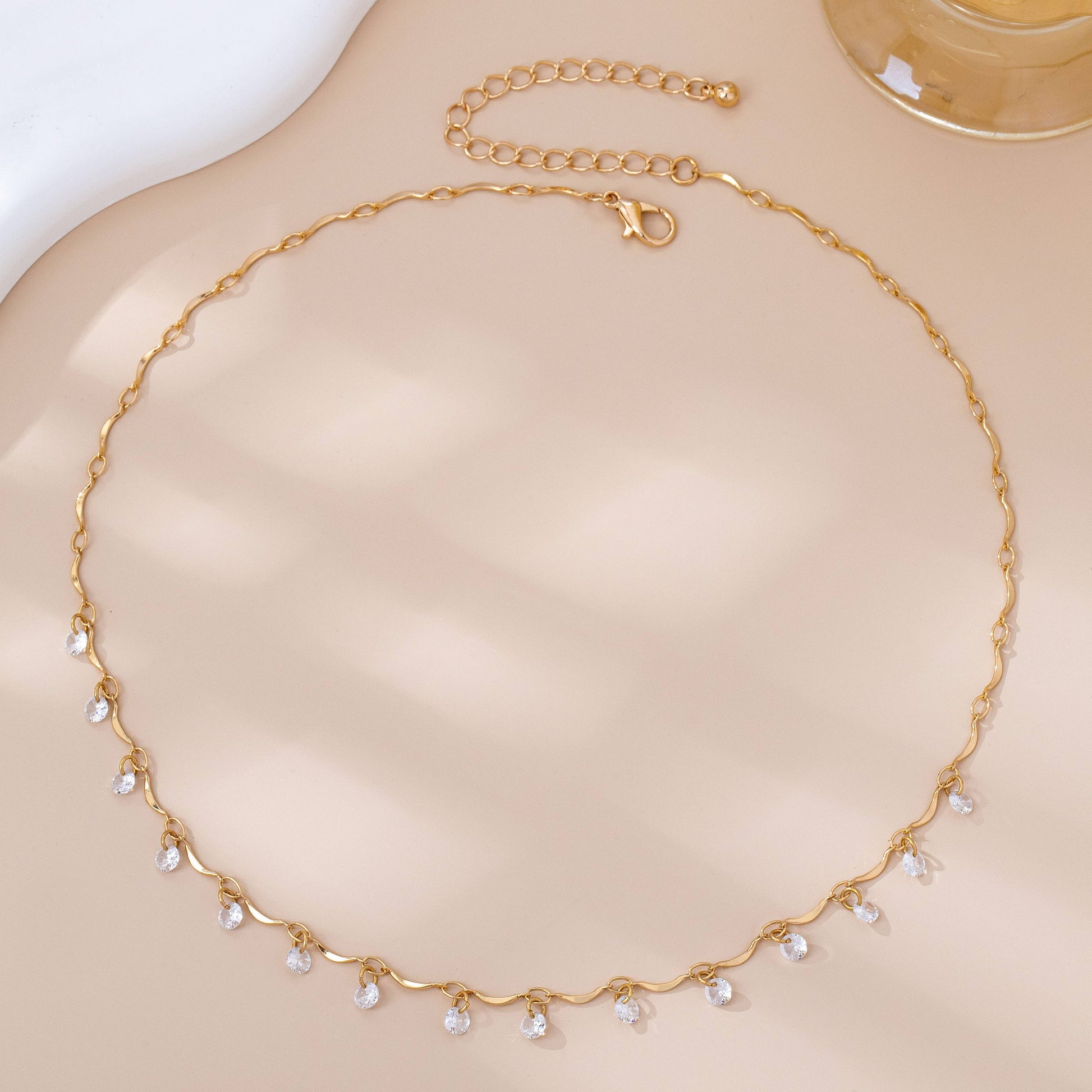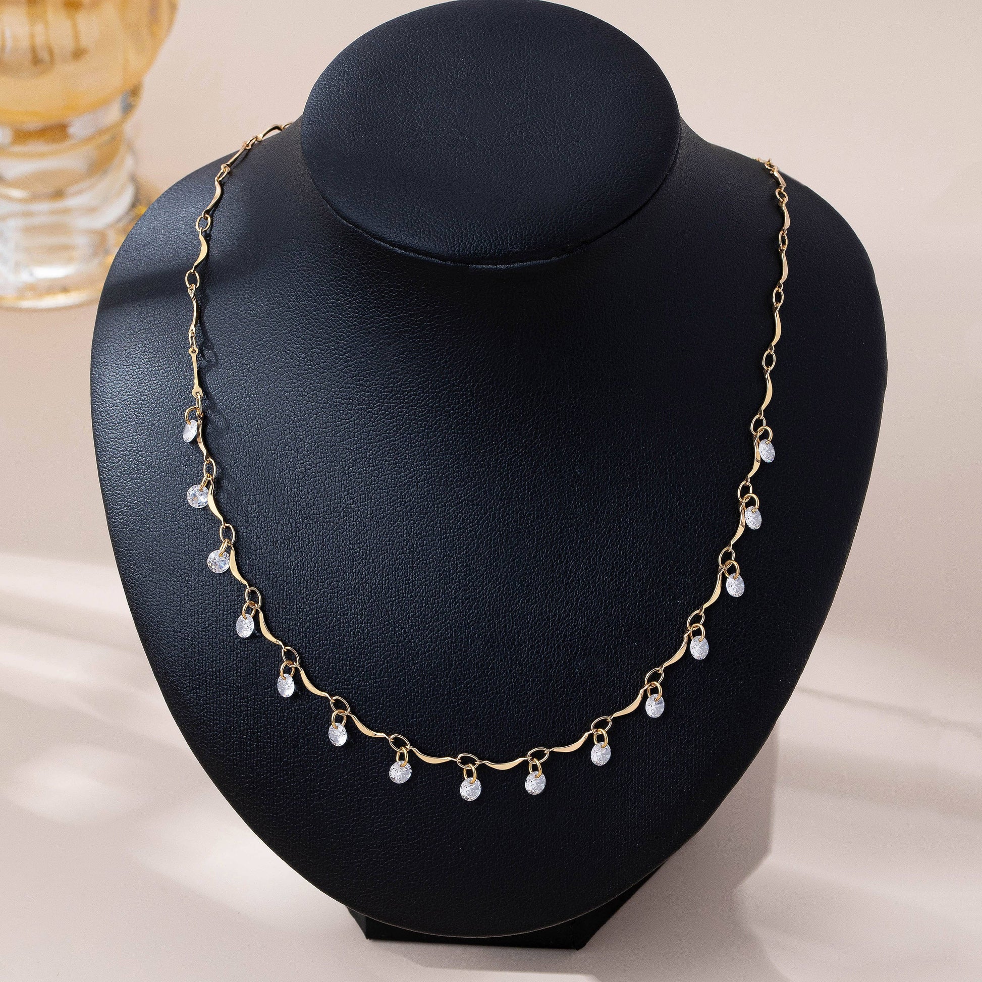 Delicate and timeless, this crystal rhinestone station necklace features a single sparkling rhinestone set along a softly curved station on a fine chain. Subtle yet eye-catching, it adds just the right amount of shine for everyday wear or special occasions. A beautiful gift option for the holidays, including Christmas, Mother’s Day, and Valentine’s Day.
