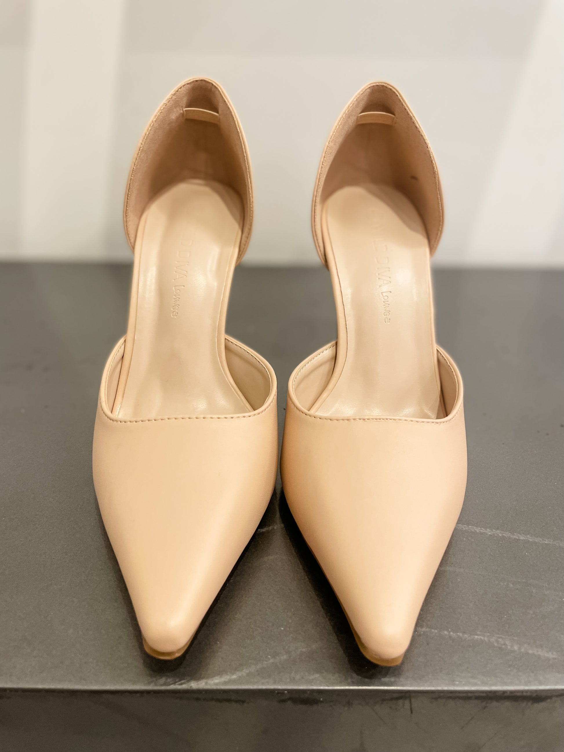 The Diva Stiletto is the perfect staple for any wardrobe. With a nude, matte leather finish, stiletto heel, and pointed toe, you'll feel fierce and stylish. Order a half to full size down as they do run big!