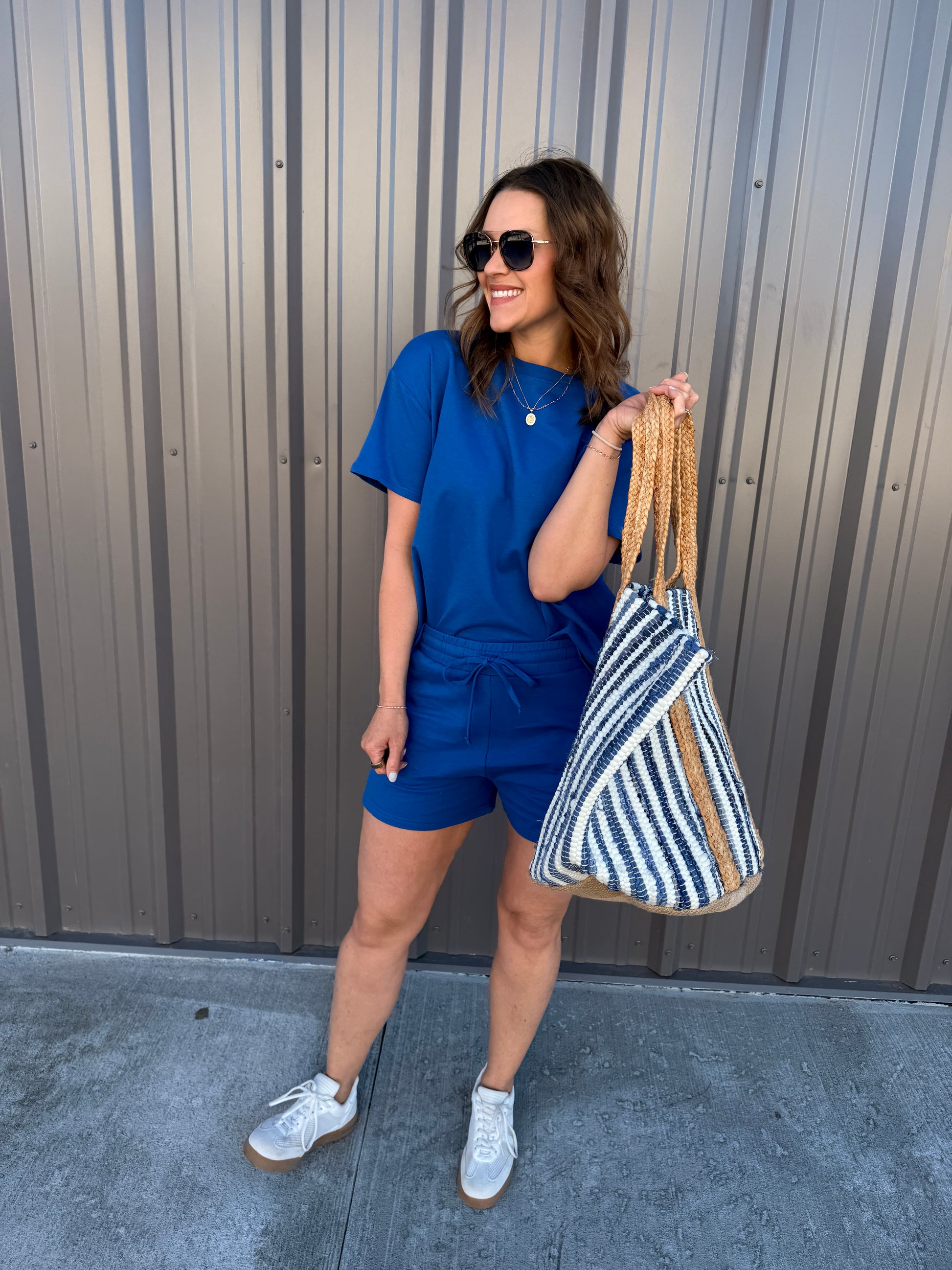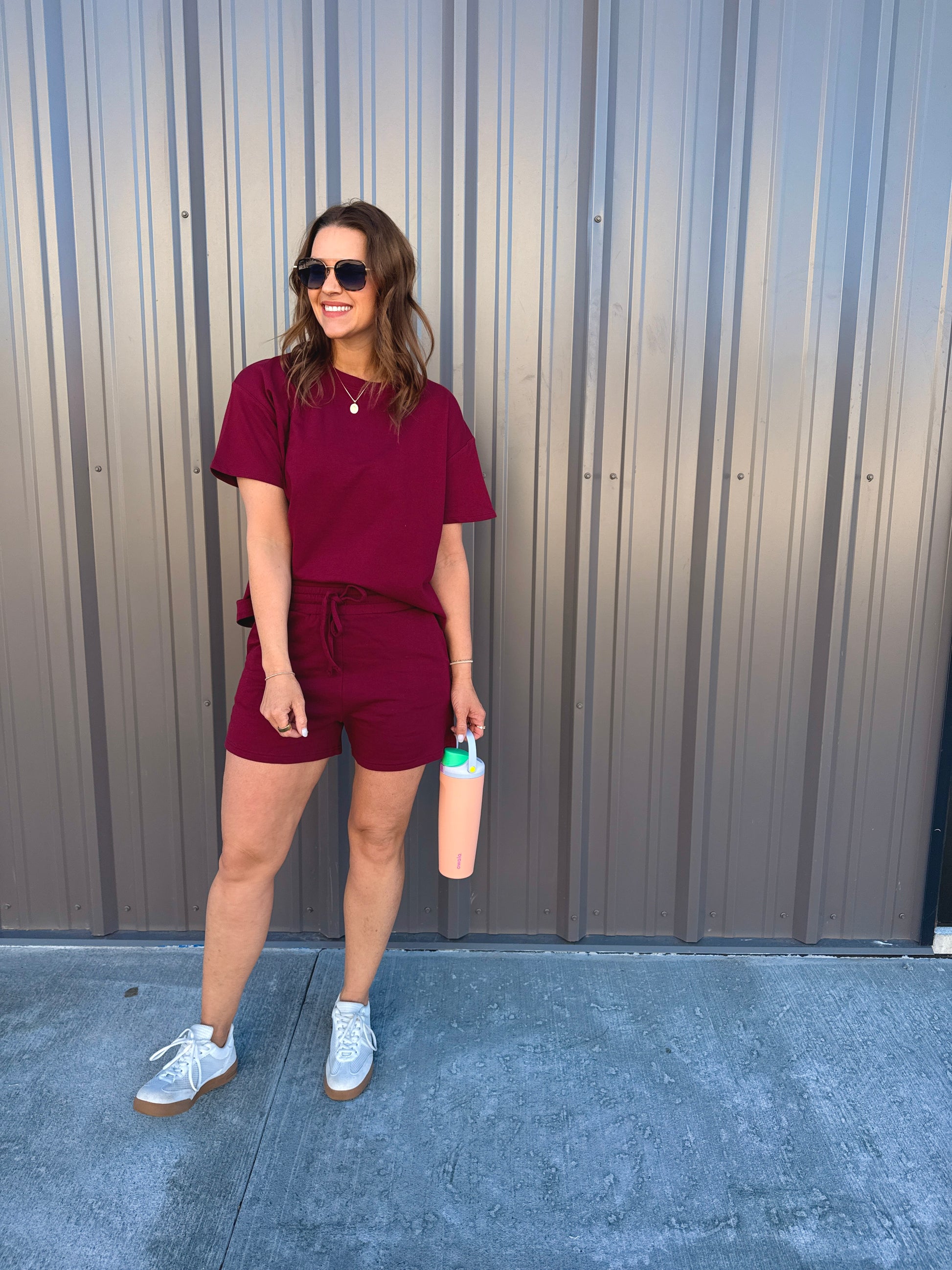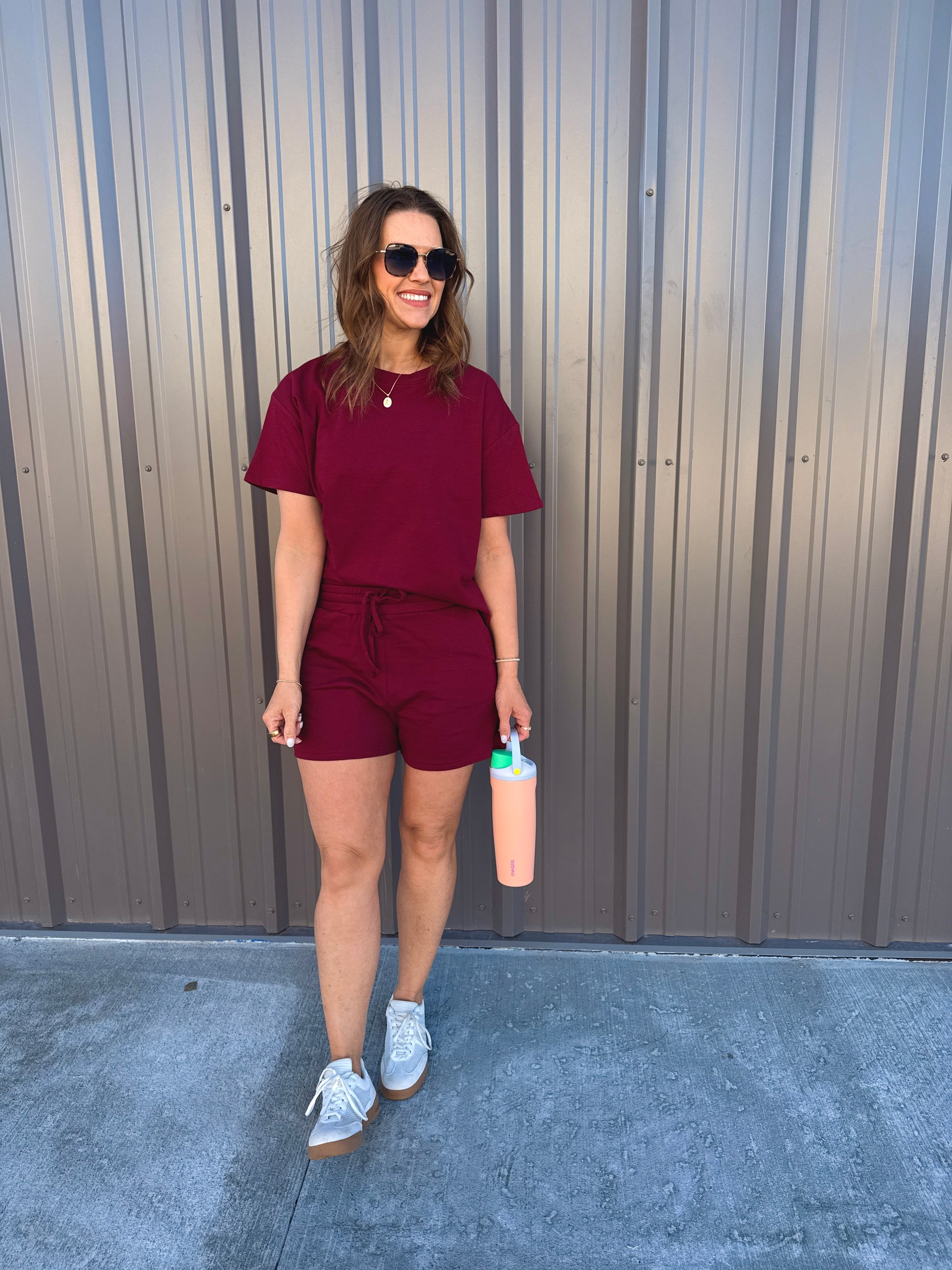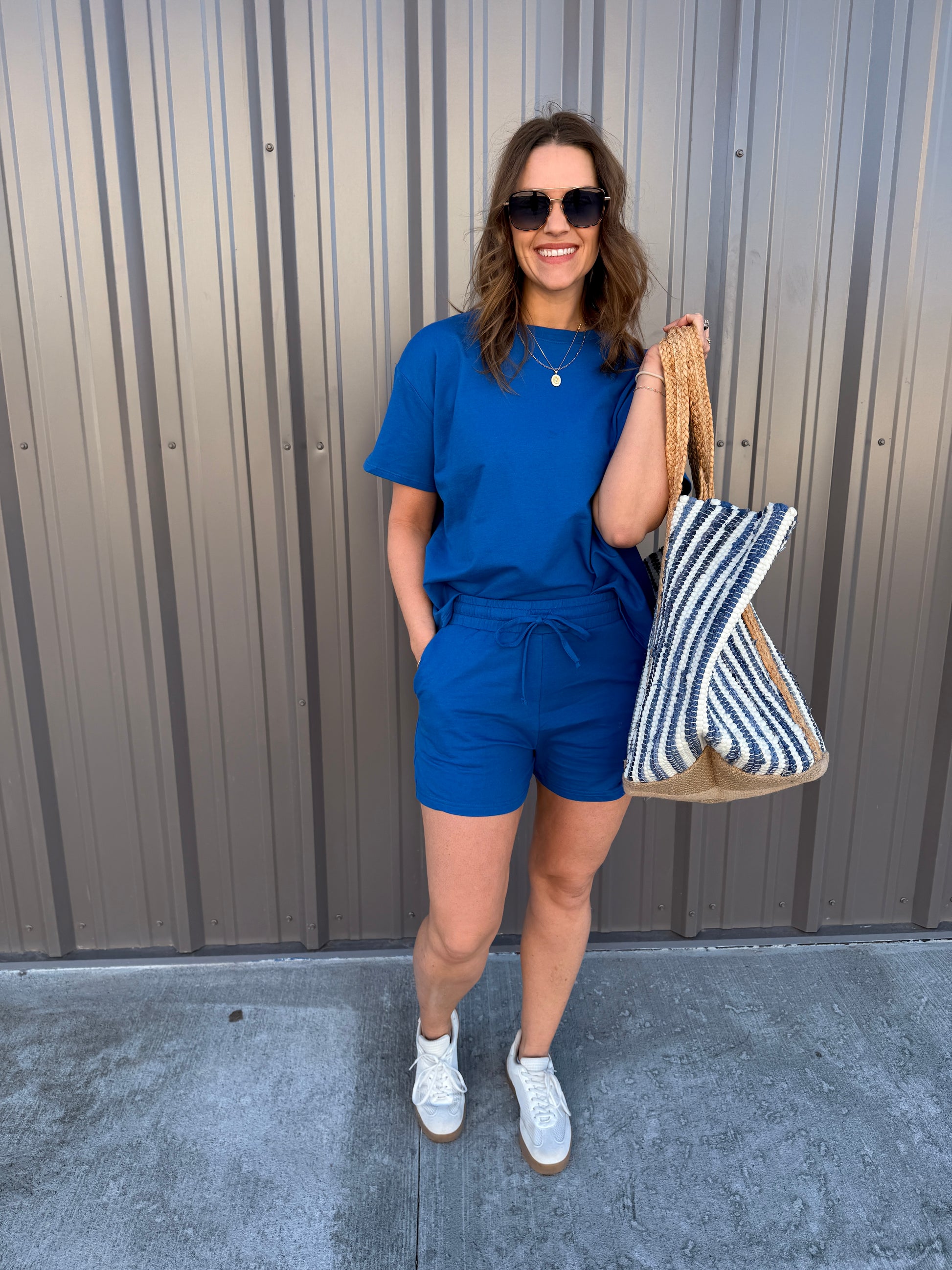 Effortless comfort meets everyday style with this French terry two-piece. The short-sleeve, round-neck top features a relaxed, oversized fit, while the matching shorts include a comfortable elastic waist and functional pockets. Perfect for lounging, errands, or casual days on the go. Wear together for an easy set look or mix and match—each piece is sold separately for versatile styling.