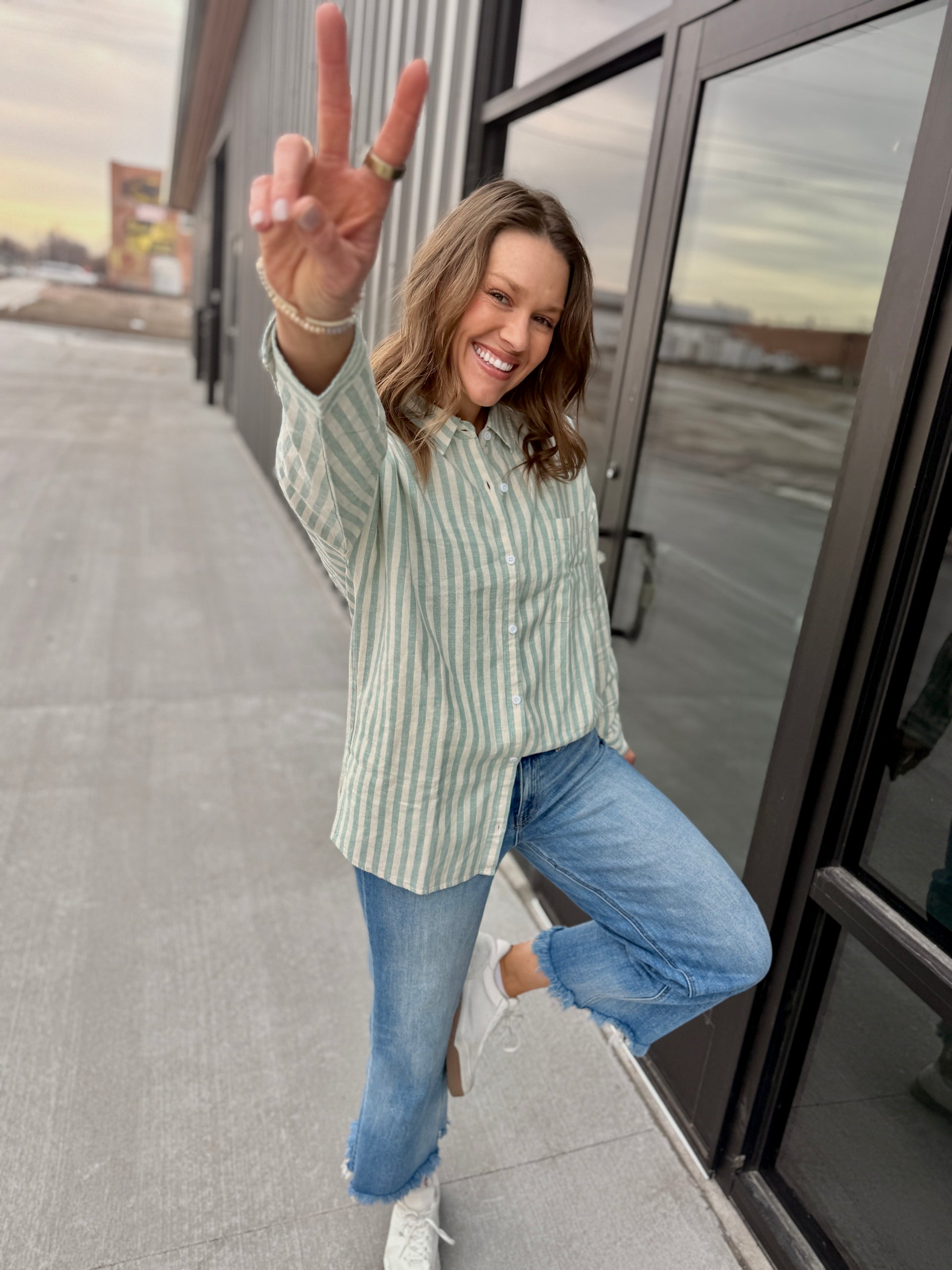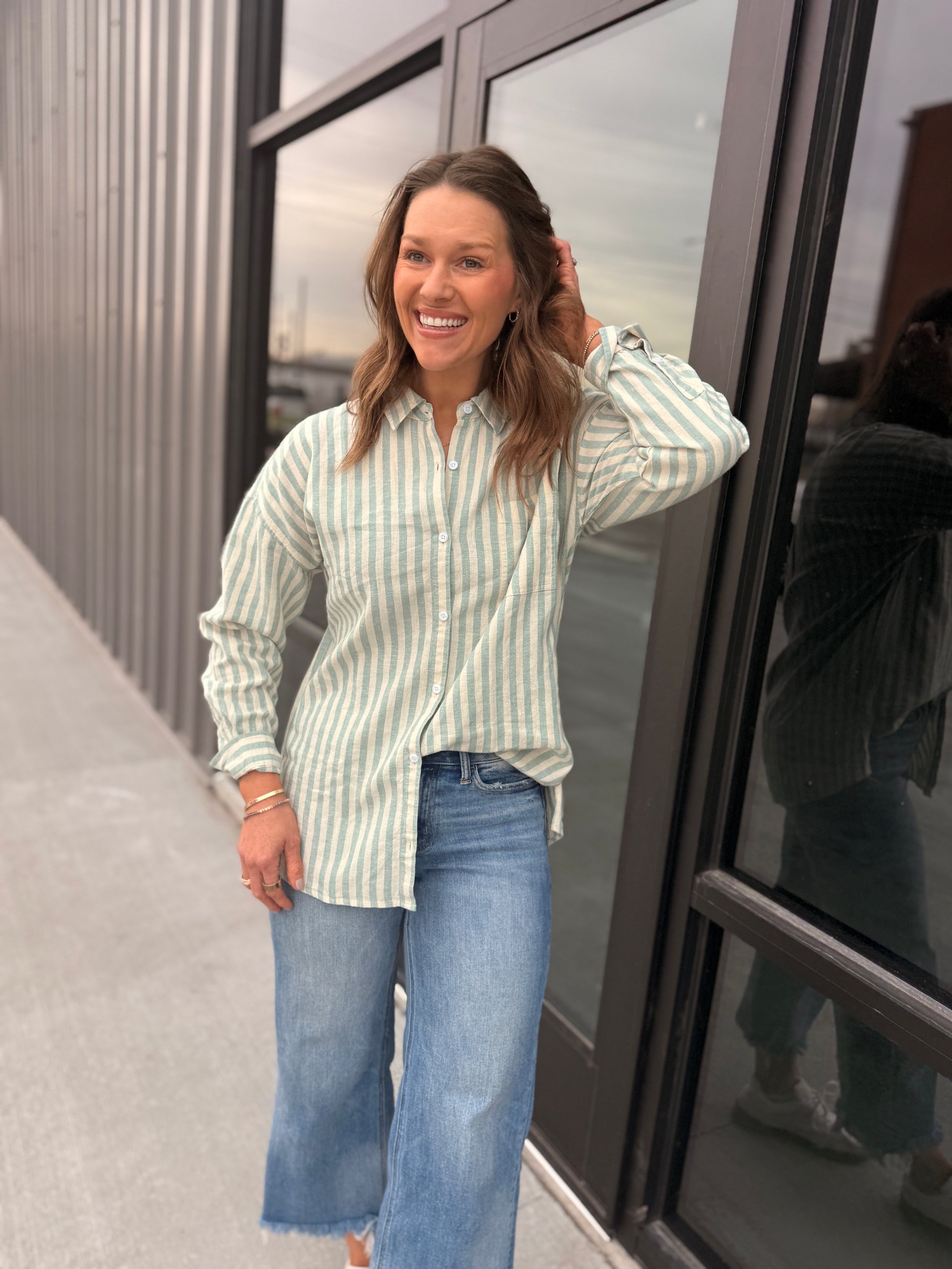 Eeden Stripe Button-Down – Seafoam & Cream