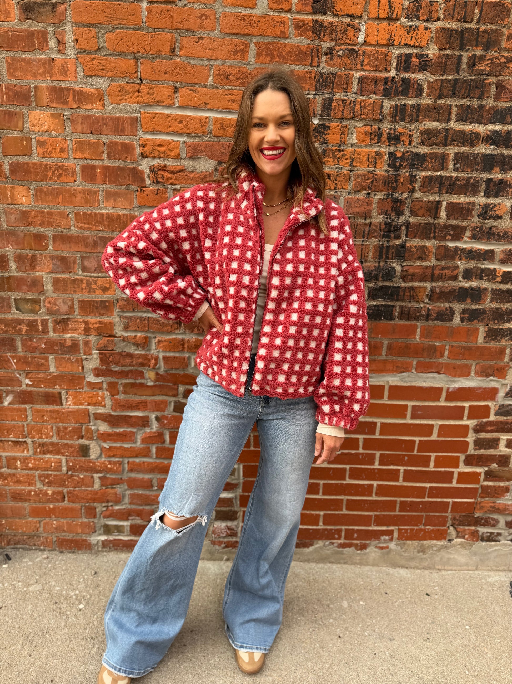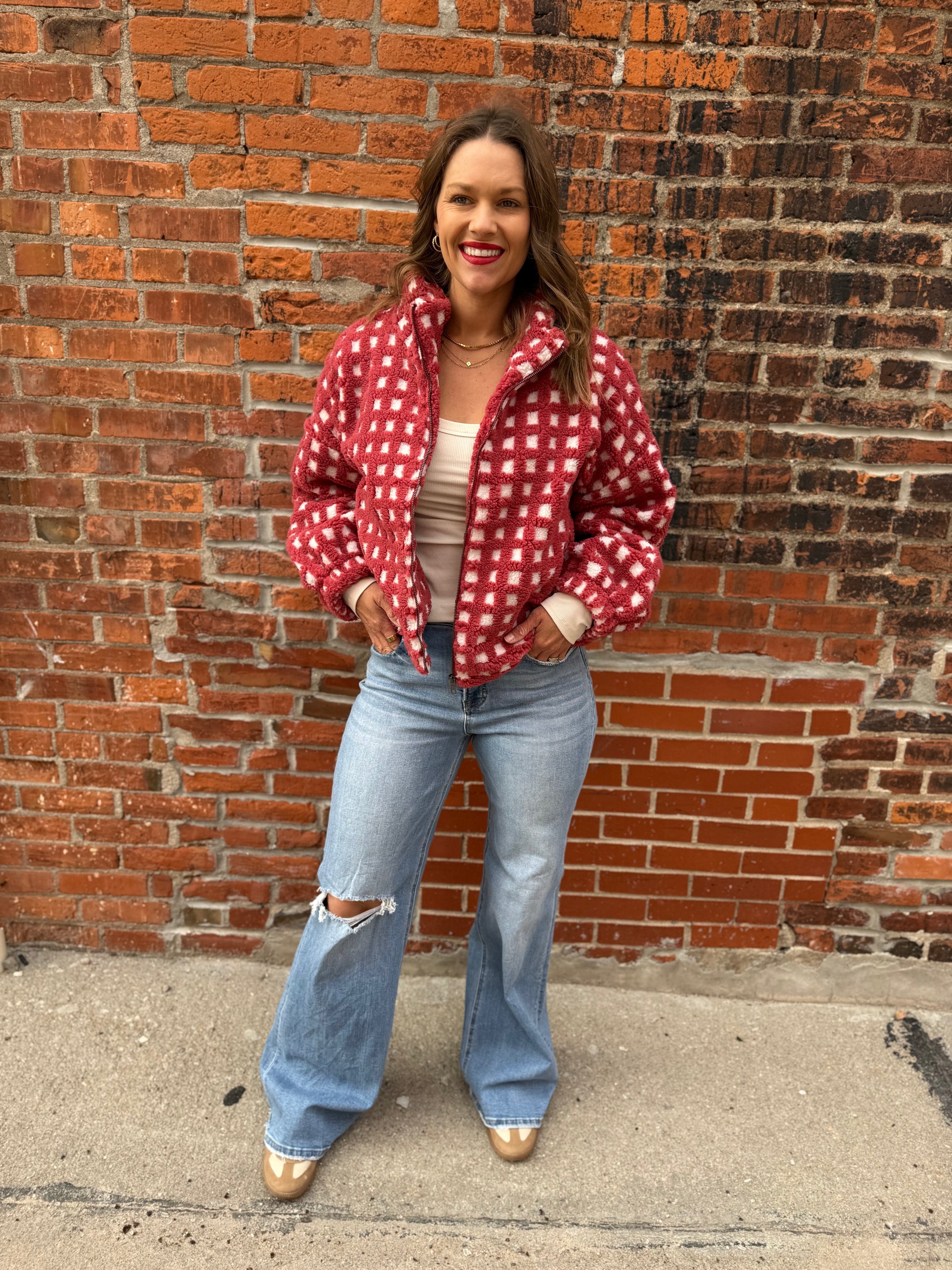 A cozy blend of style and warmth. This jacket seamlessly combines a classic checker pattern with the plush comfort of teddy fabric, making it a must-have addition to your wardrobe. Crafted with meticulous attention to detail, this jacket features a captivating checker pattern that adds a touch of timeless charm. The teddy fabric offers softness and insulation, ensuring you stay snug and stylish through chilly seasons. Whether you're out for a walk, running errands, or simply enjoying some leisure time, our Checker Teddy Jacket keeps you cozy and fashionable. Its versatile design allows you to effortlessly layer it over different outfits, making it a go-to choice for various occasions.