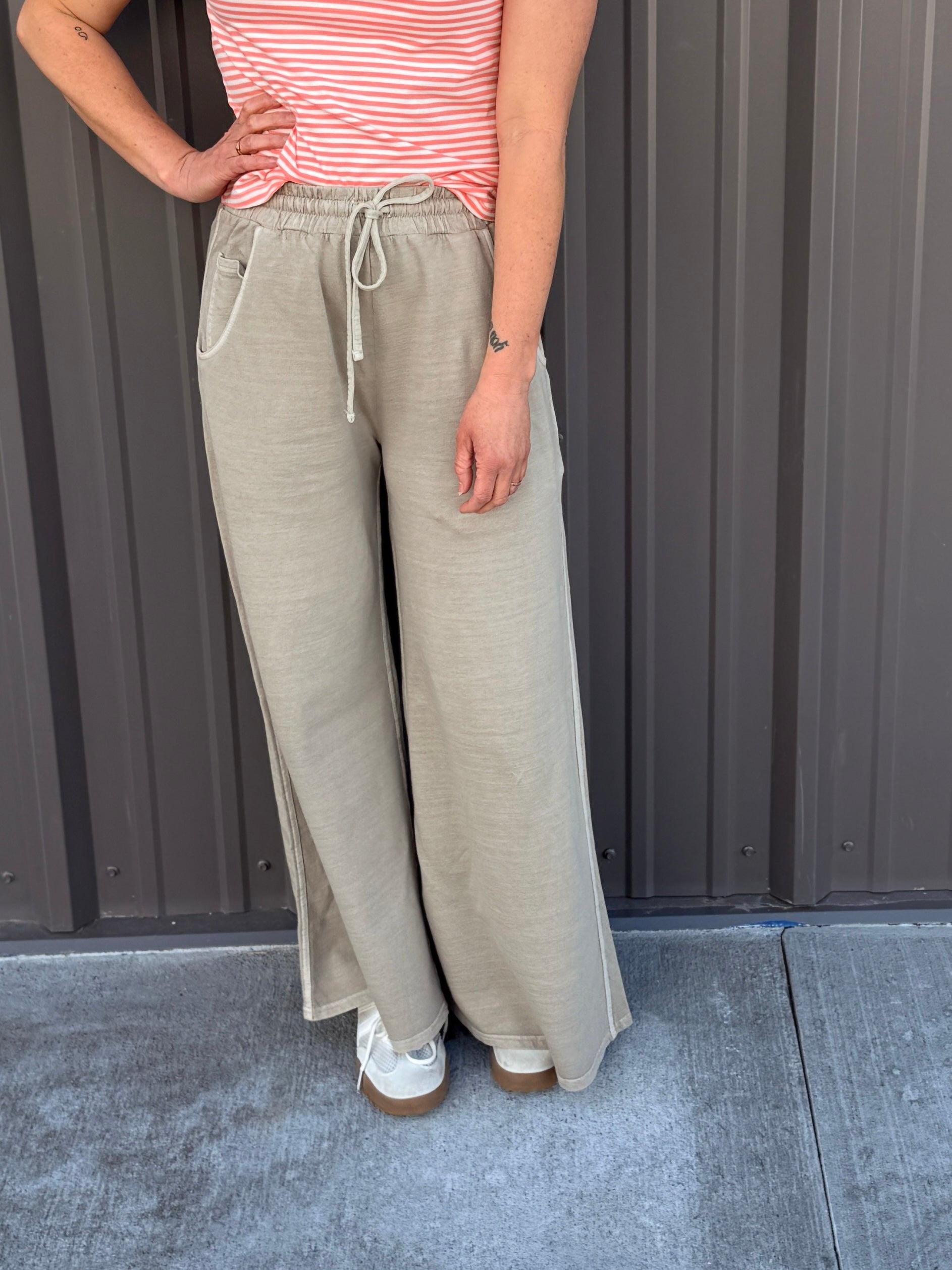 Soft, lived-in, and effortlessly relaxed — these French Terry Pigment Dye & Enzyme Washed Pants are the cozy-casual pair you’ll want to wear on repeat. Made in a comfy French terry fabric with a relaxed wide-leg silhouette, they’re perfect for lounging, errands, and easy everyday style. The pigment dye + enzyme wash gives them that slightly vintage, washed-down look we love.
