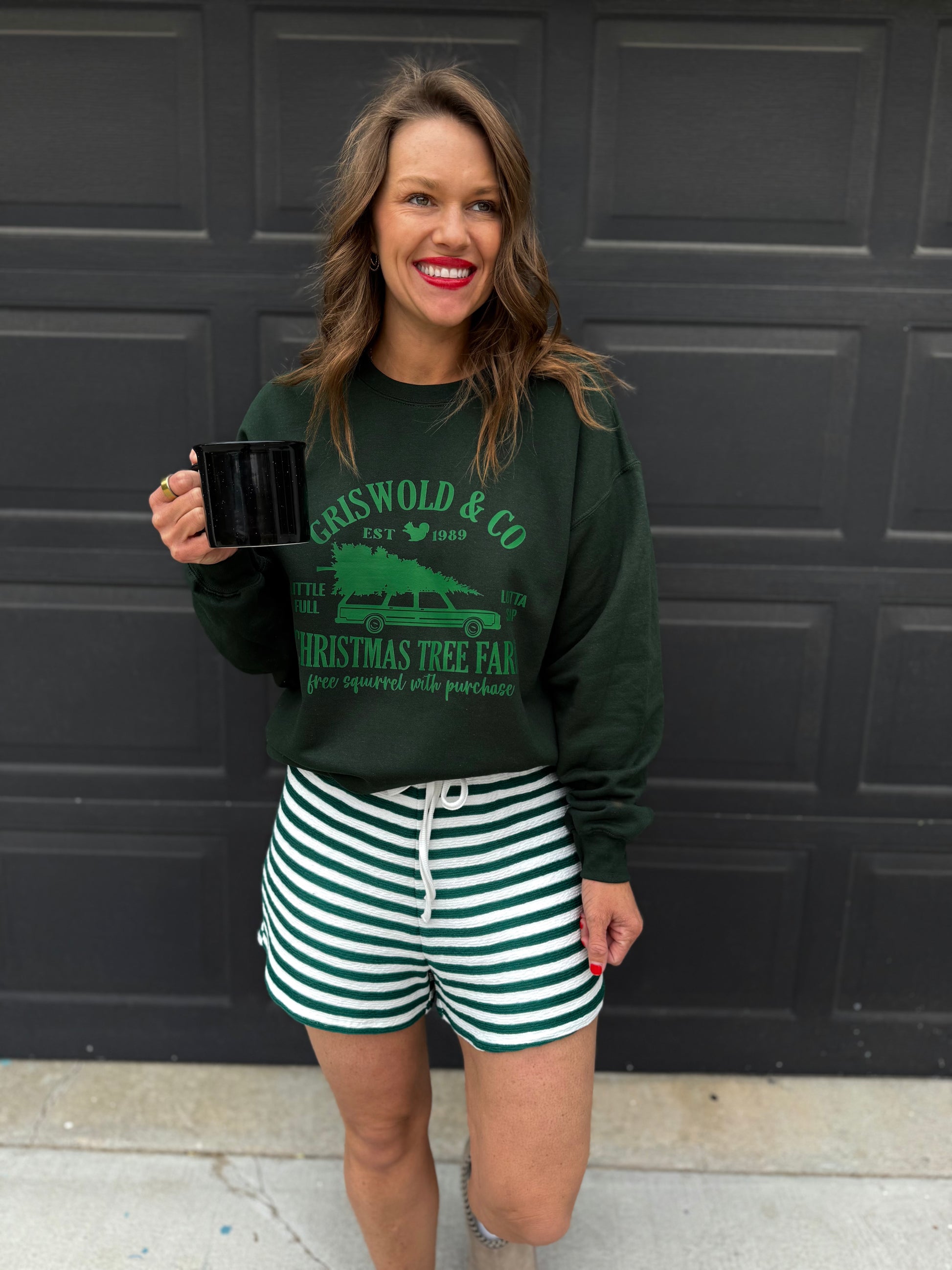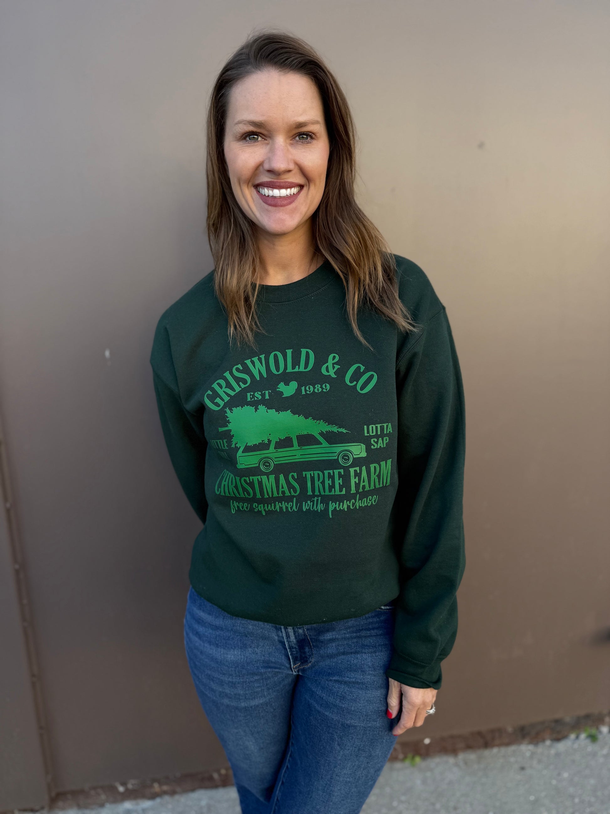 Introducing the Griswald & Co crewneck, featuring the iconic Griswold graphic on a rich pine green backdrop. With its true-to-size fit, this crewneck is perfect for any occasion. Size up for an oversized look and level up your wardrobe with this must-have piece.