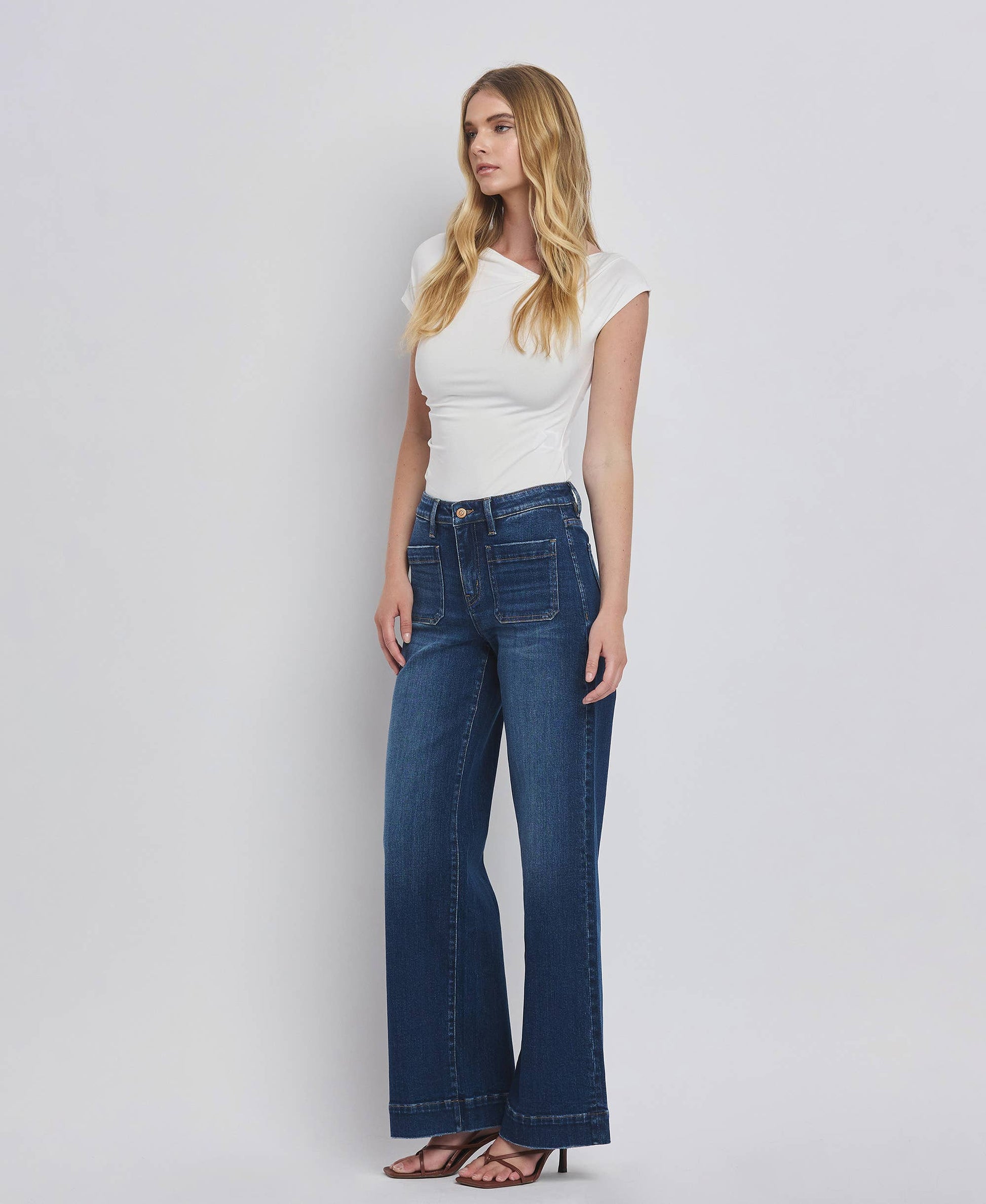Meet your new favorite pair — The Nola High Rise Stretch Jeans. Crafted from comfort stretch denim, these wide-leg trousers offer that perfect mix of structure and ease. Designed with a flattering high-rise waist and patch pocket details, they bring a polished yet effortless vibe to any outfit. The full-length, wide-leg silhouette elongates your legs and pairs beautifully with everything from sneakers to heeled boots.