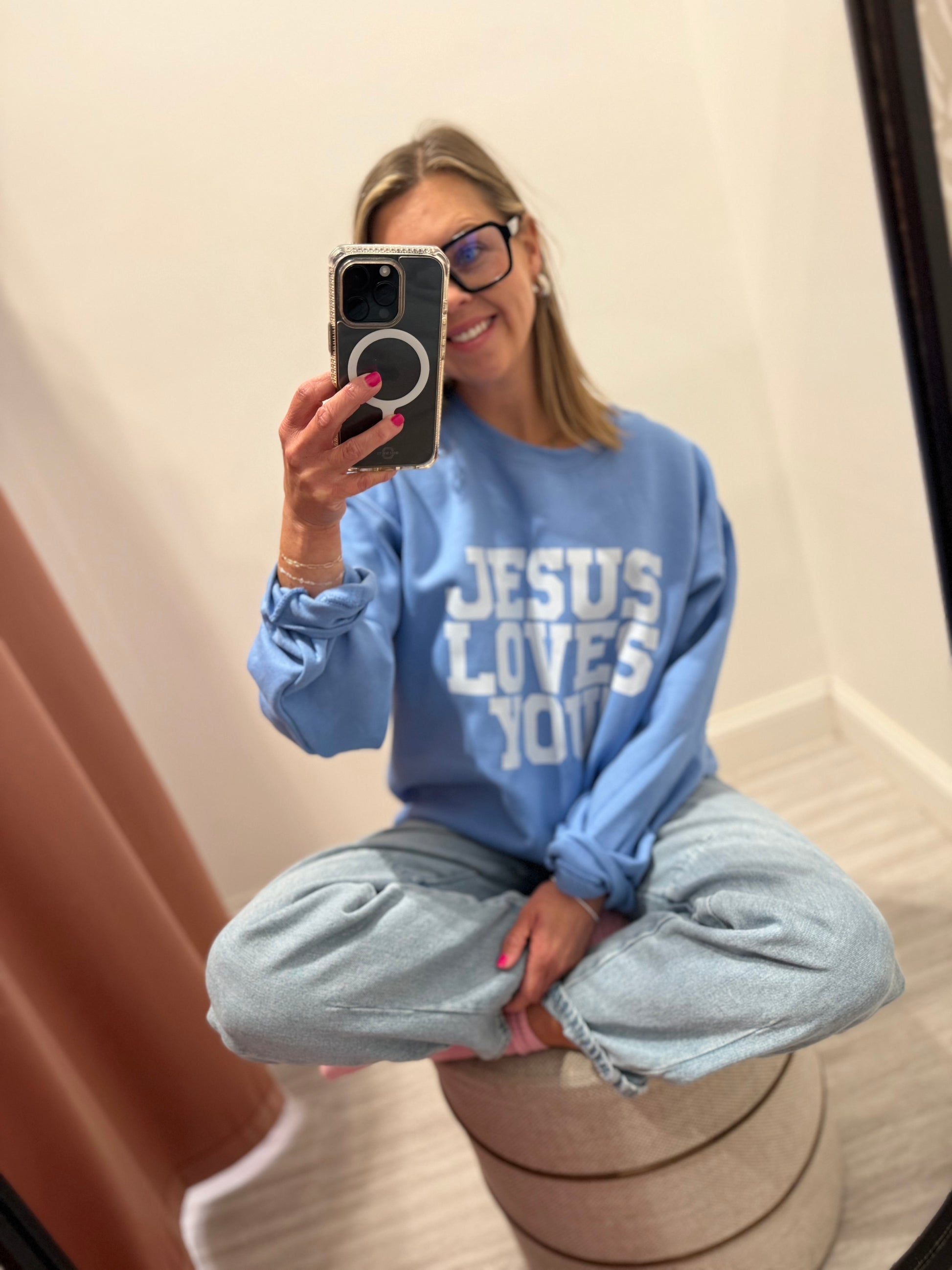 This vibrant Jesus Loves You Crewneck is your new favorite for every chill moment—whether you're running errands, relaxing at home, or gathered around a cozy bonfire. Super soft and comfy, it combines a playful message with a bright, inviting look you’ll want to wear again and again. Perfect for spreading good vibes with style!