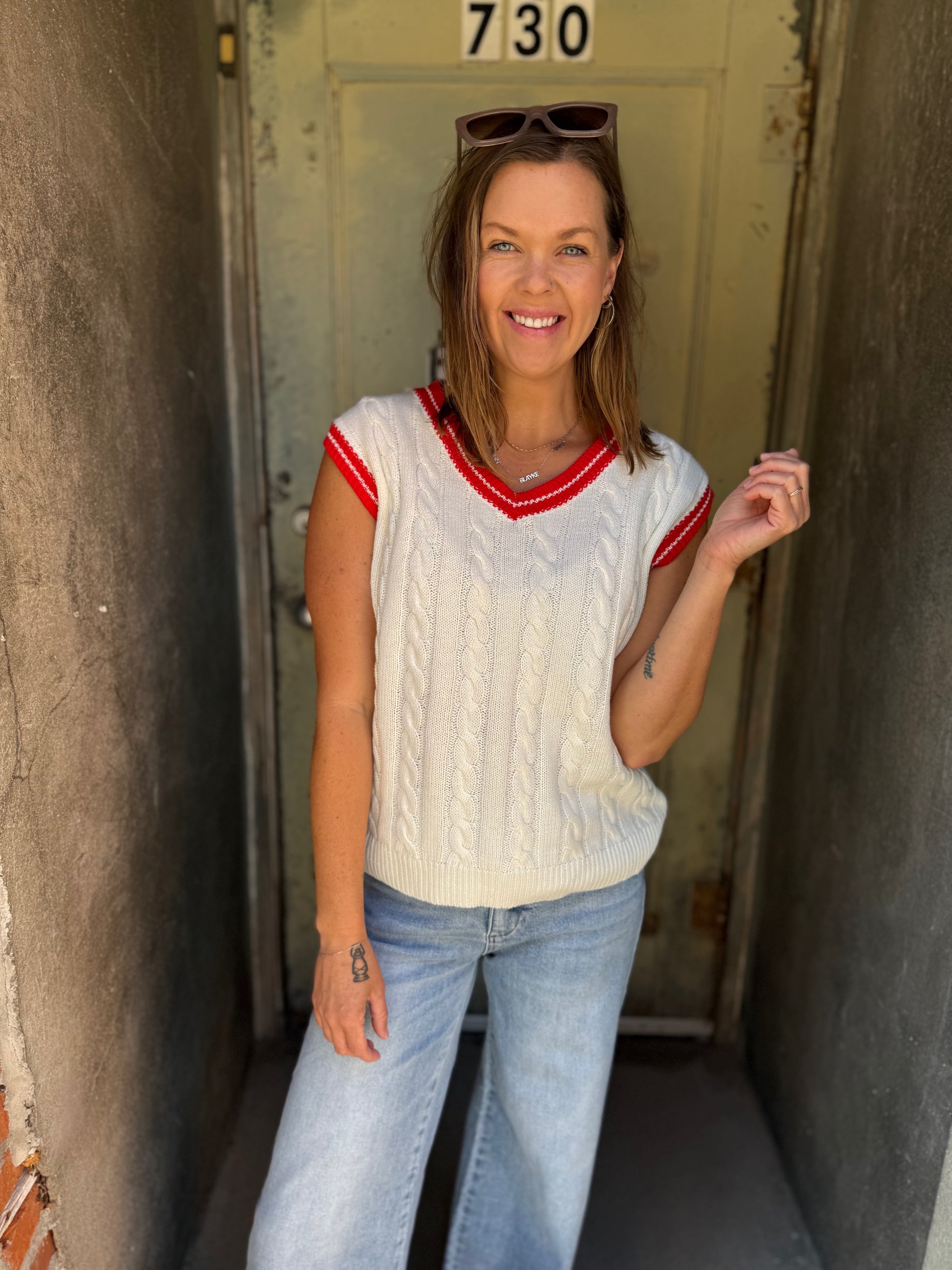Stay cozy and effortlessly chic in The Emery Knit Sweater Vest. Designed with a classic sleeveless cut and soft knit texture, this timeless piece is perfect for layering over crisp shirts, casual tees, or wearing solo for a modern, minimal look.