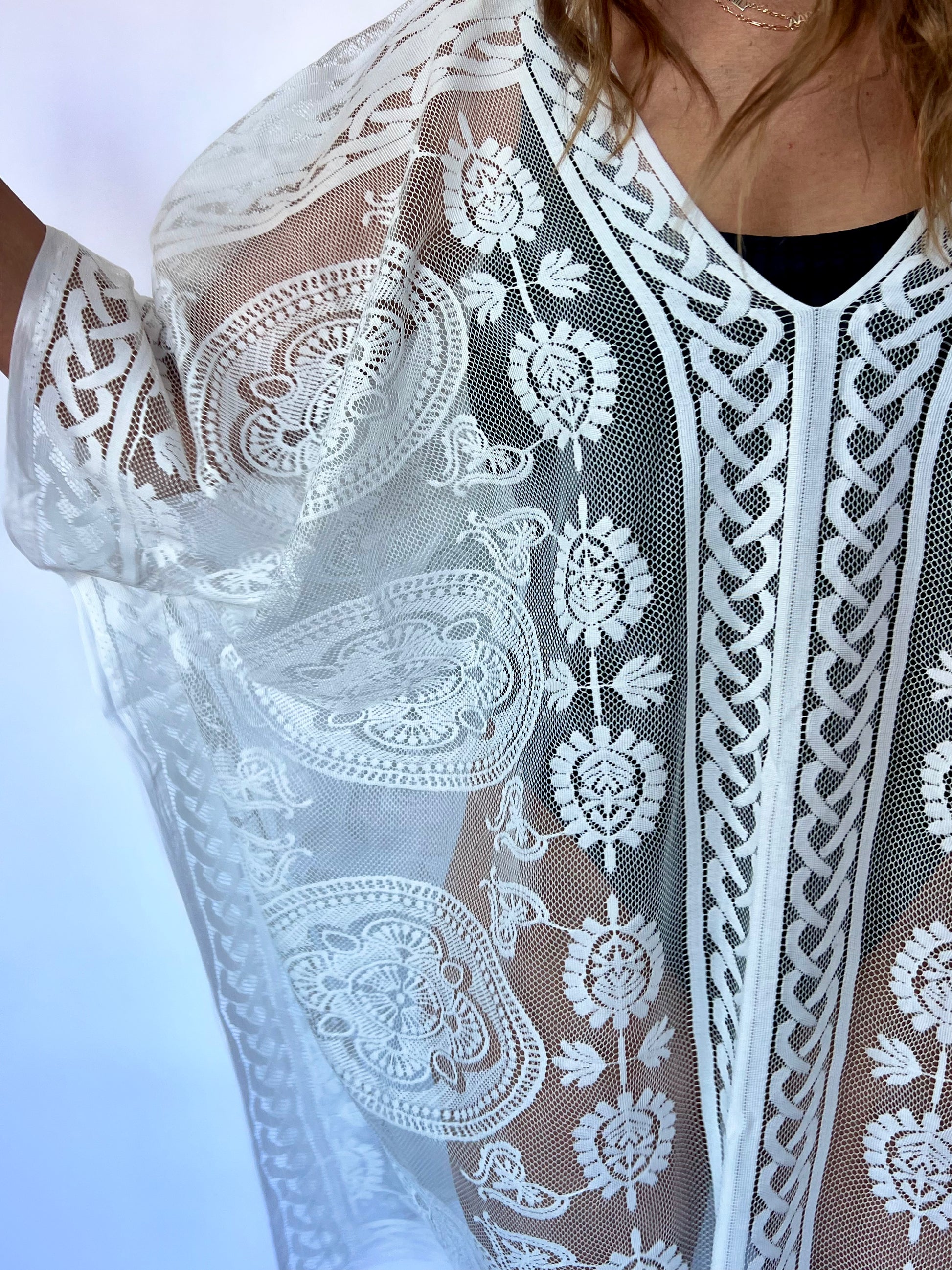 Indulge in the intricate beauty of our PAISLEY MEDALLION LACE TOPPER! This 39"X37" lace piece will elevate any outfit with its delicate paisley medallion design. Add a touch of elegance and sophistication to your wardrobe.
