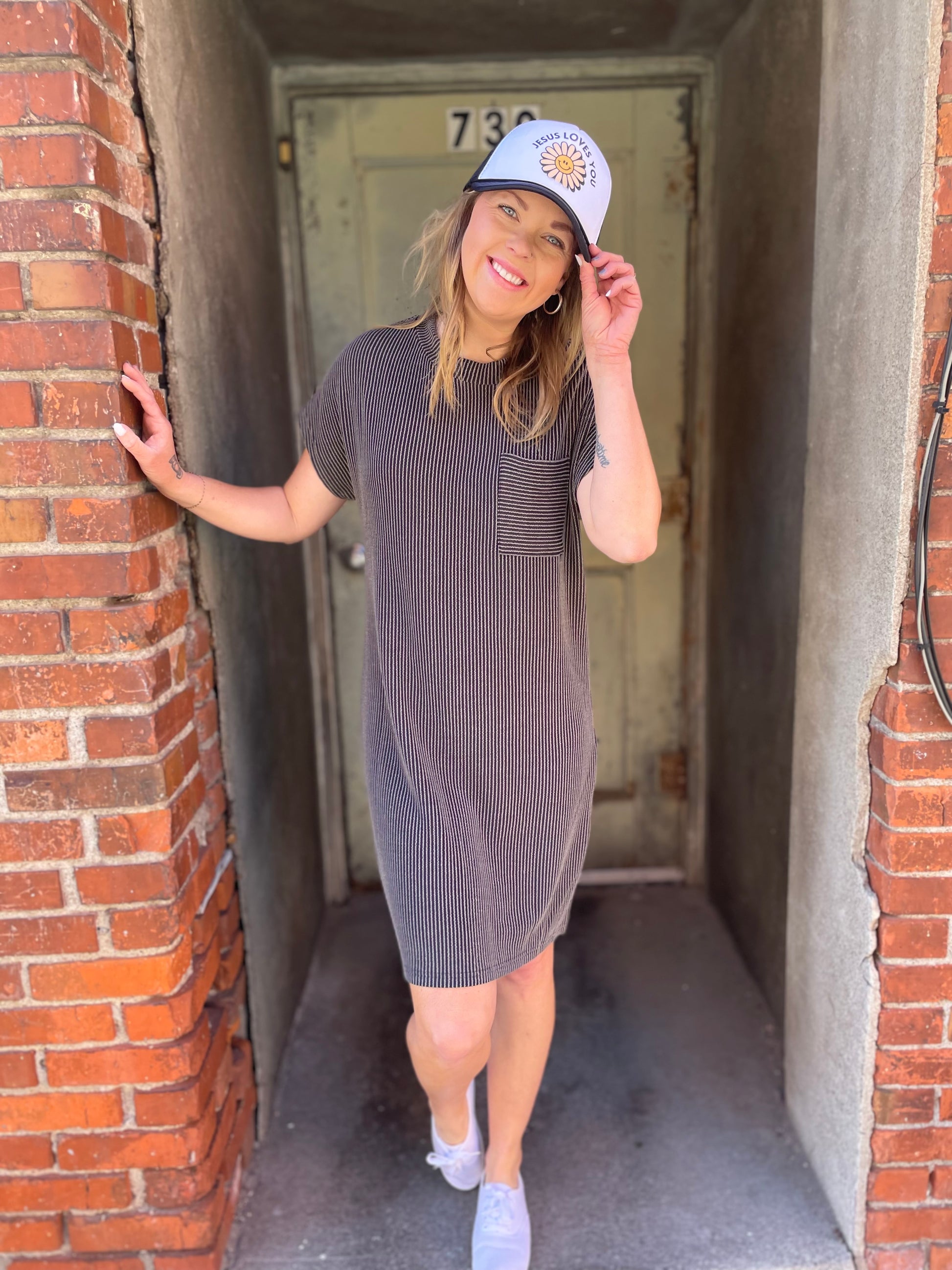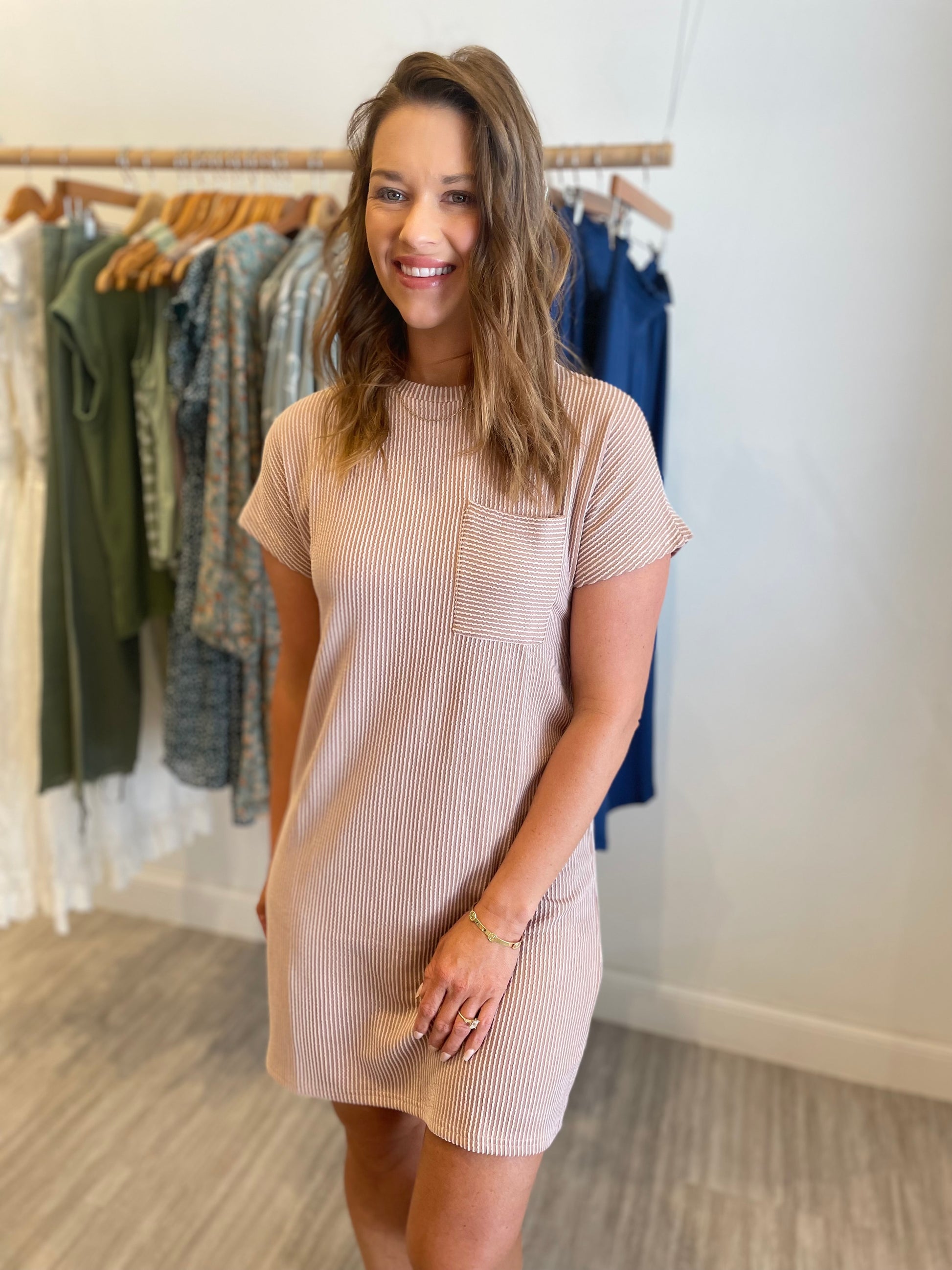 PGet ready to embrace comfort and style with our versatile tee dress! Featuring a round neck, short sleeves, and relaxed fit, it's perfect for anyone. The fine fabric and casual design provide unbeatable coziness, while the patch pocket adds a touch of fashion to this must-have piece. Don't miss out on this trendy and comfy addition to your wardrobe.