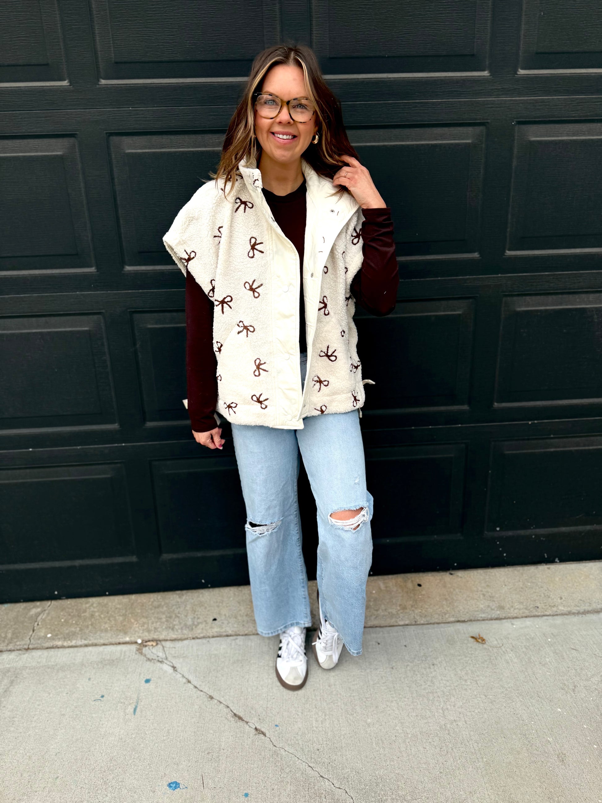 The Bow Detail Vest is your new layering MVP. Lightweight, ultra-soft, and styled with modern ribbon accents, it hits the perfect balance of cool and comfy. Snap buttons give you quick closure options, and side pockets keep it practical. Throw it on over anything for instant trendsetter energy.
