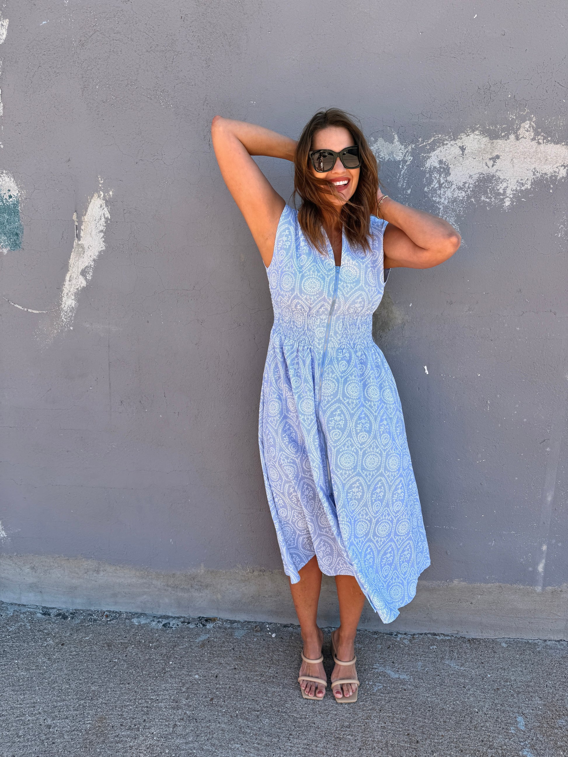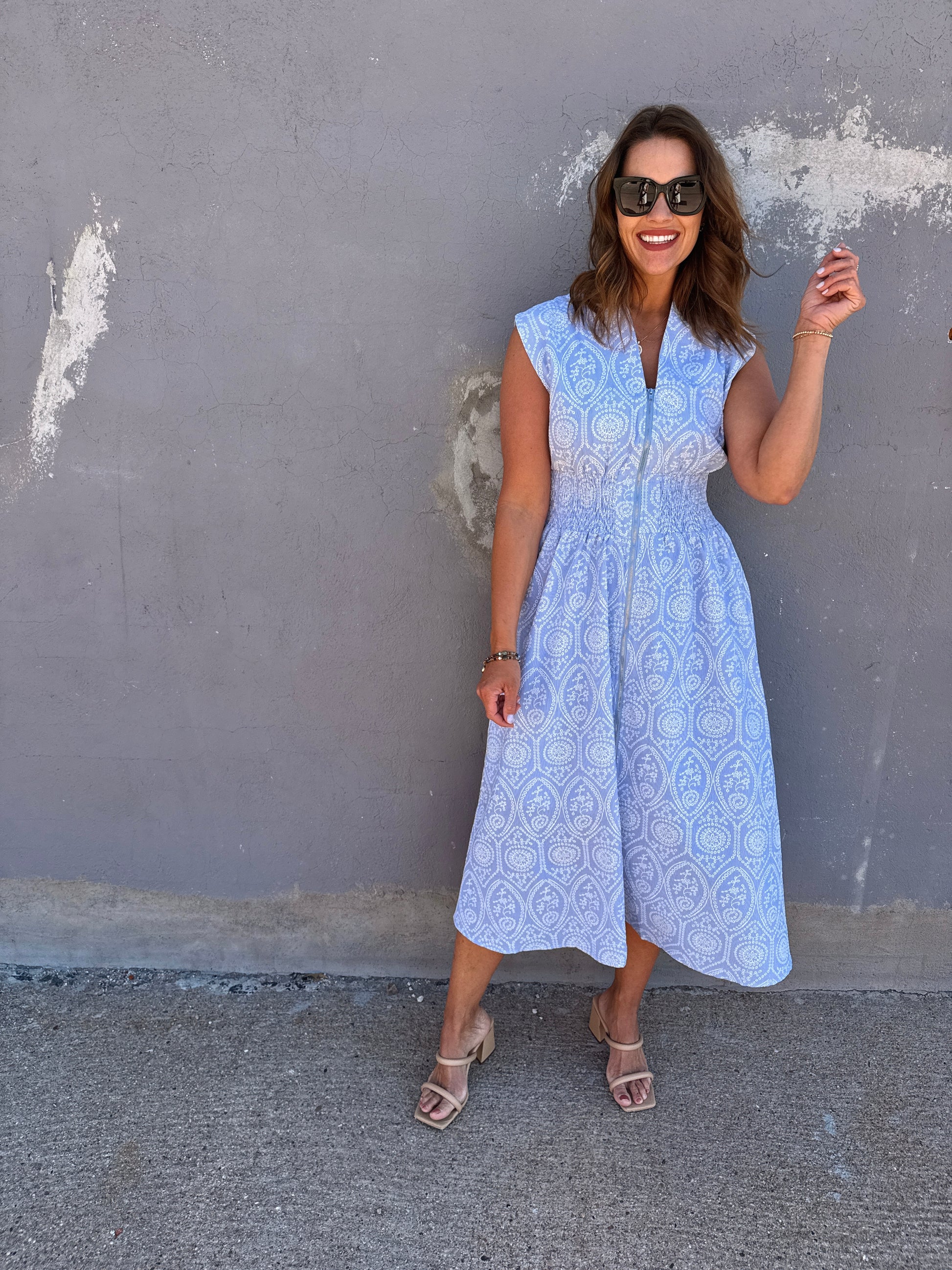 Sky Serenade Zip Midi Dress