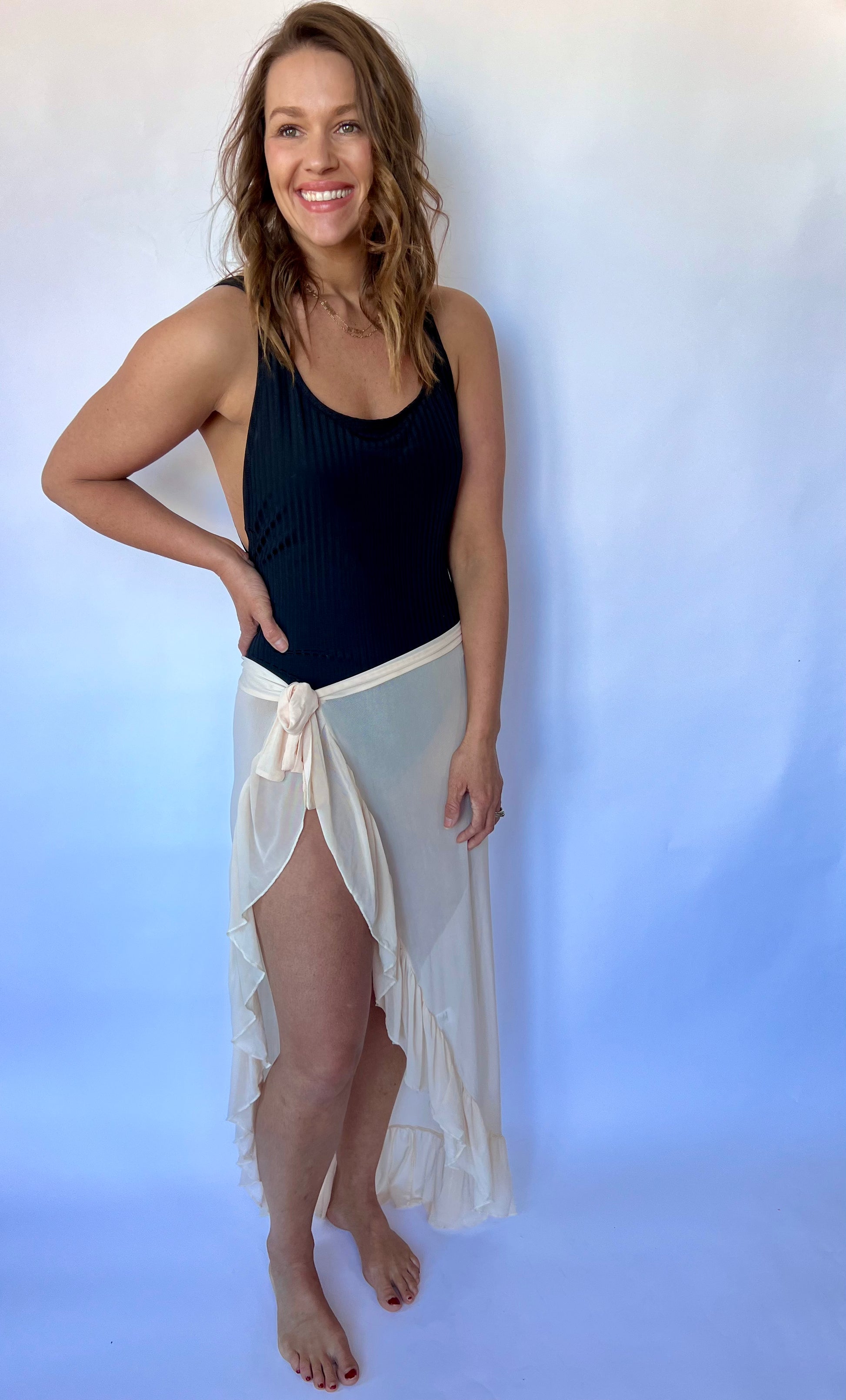 Dance under the sun with our Cream Swim Cover! Perfect for beach parties, this semi-sheer chiffon sarong skirt boasts a flowy and sexy maxi silhouette accented with ruffled edges and a playful tie detail. Embrace the warm weather and turn heads in style.