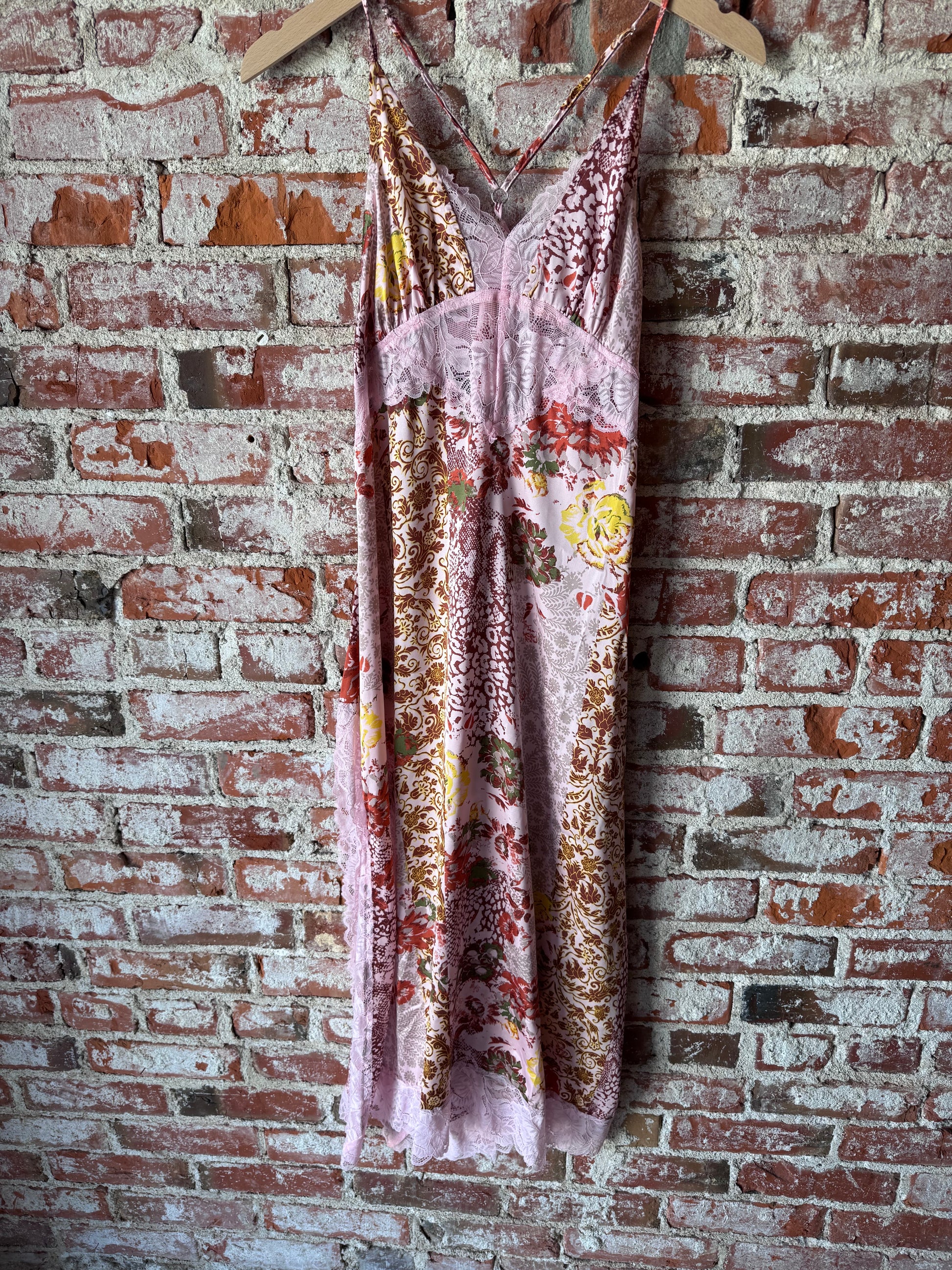 Cast a spell with this enchanting Love Spell dress. Draped in romantic pink with an intricate floral print, it's adorned with delicate lace that adds just the right touch of allure. Double slits on the sides give you freedom to move and a hint of flirtation with every step. Perfect for making an unforgettable entrance.