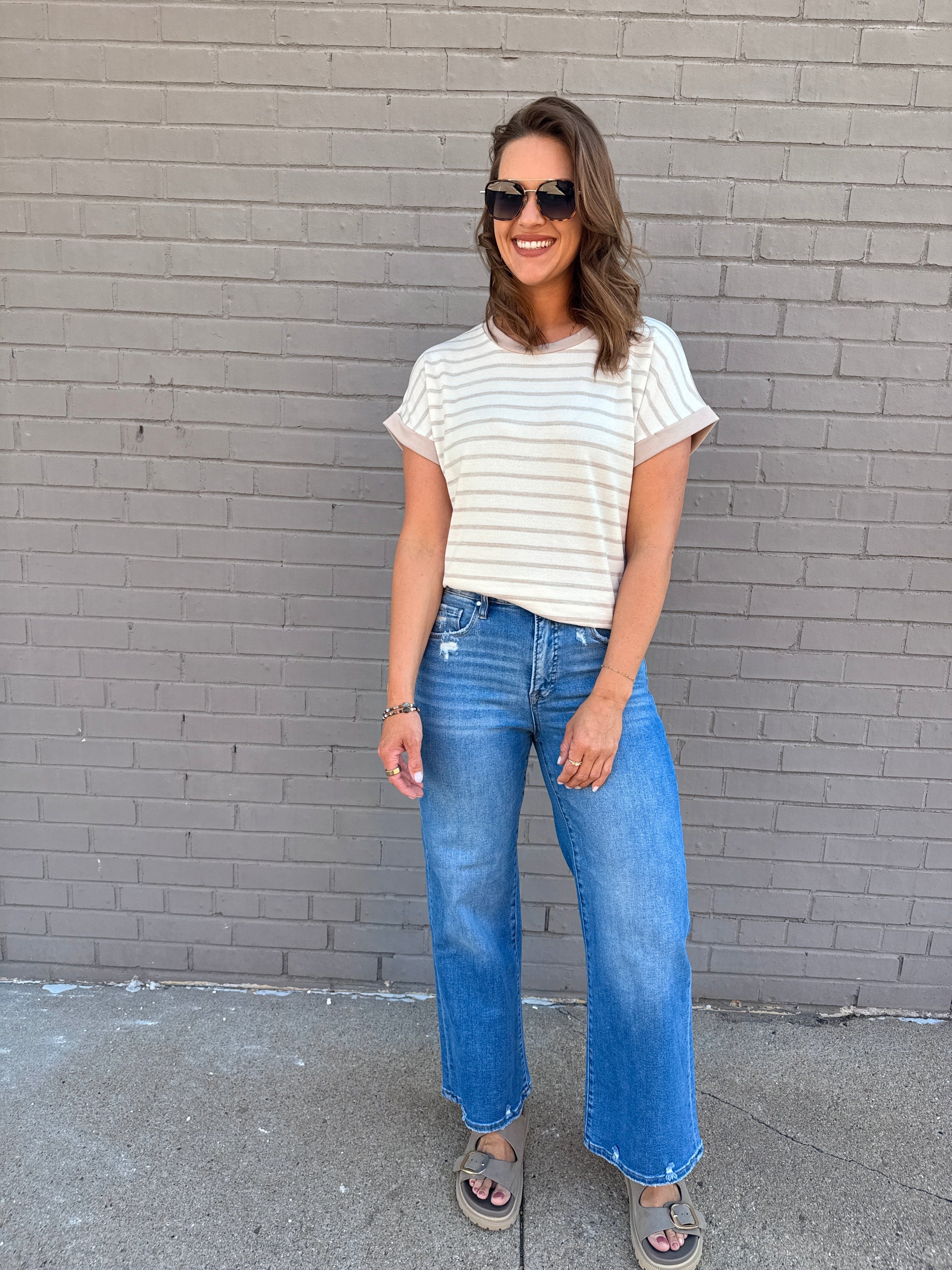 Meet Maisie, your new favorite wardrobe staple. She’s the ultimate "cool girl" basic—easygoing, incredibly soft, and always looks put together without even trying. With her classic stripes and relaxed silhouette, the Maisie is designed for those days when you want maximum comfort with a polished, coastal edge.