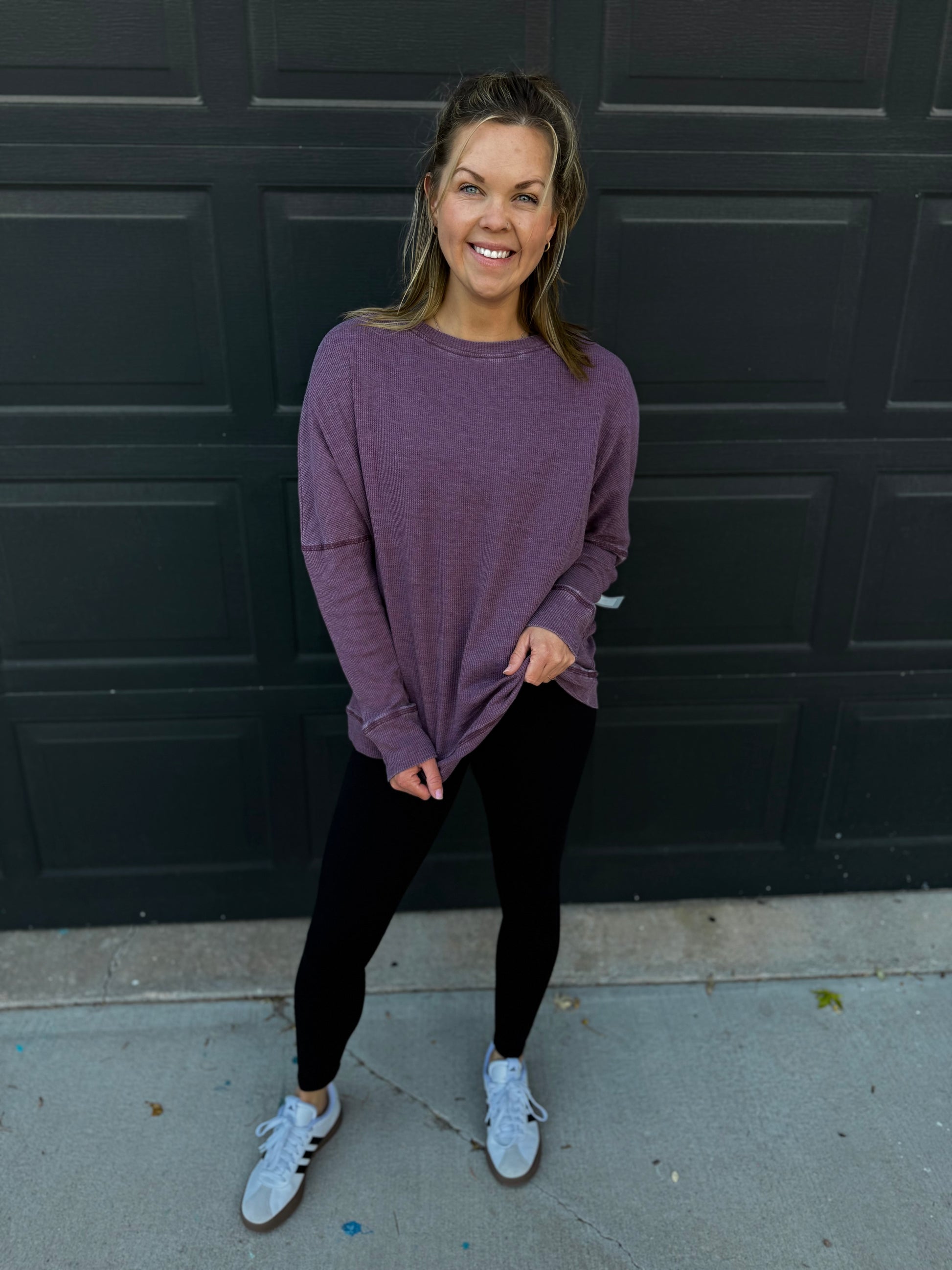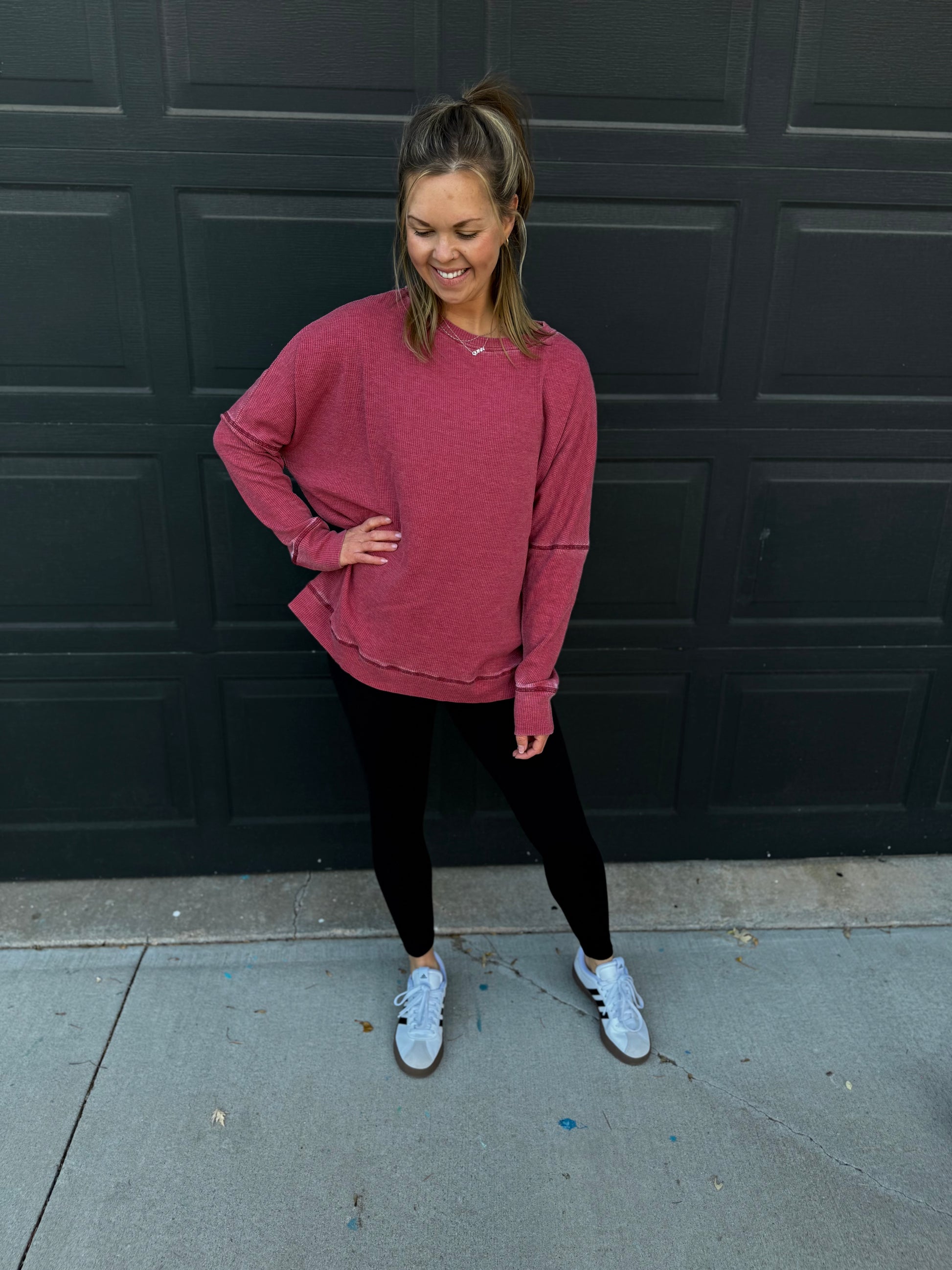 Slip into pure comfort with our Waffle Ribbed Pullover—the cozy essential that does it all. This one-size-fits-most wonder features a relaxed, laid-back silhouette that feels like a warm hug, paired with a textured waffle knit that's as soft as it is stylish. Available in multiple colors to match your mood, it hits at just the right length for effortless everyday wear. Whether you're lounging at home or running errands, this pullover is your new go-to for that perfectly casual vibe.