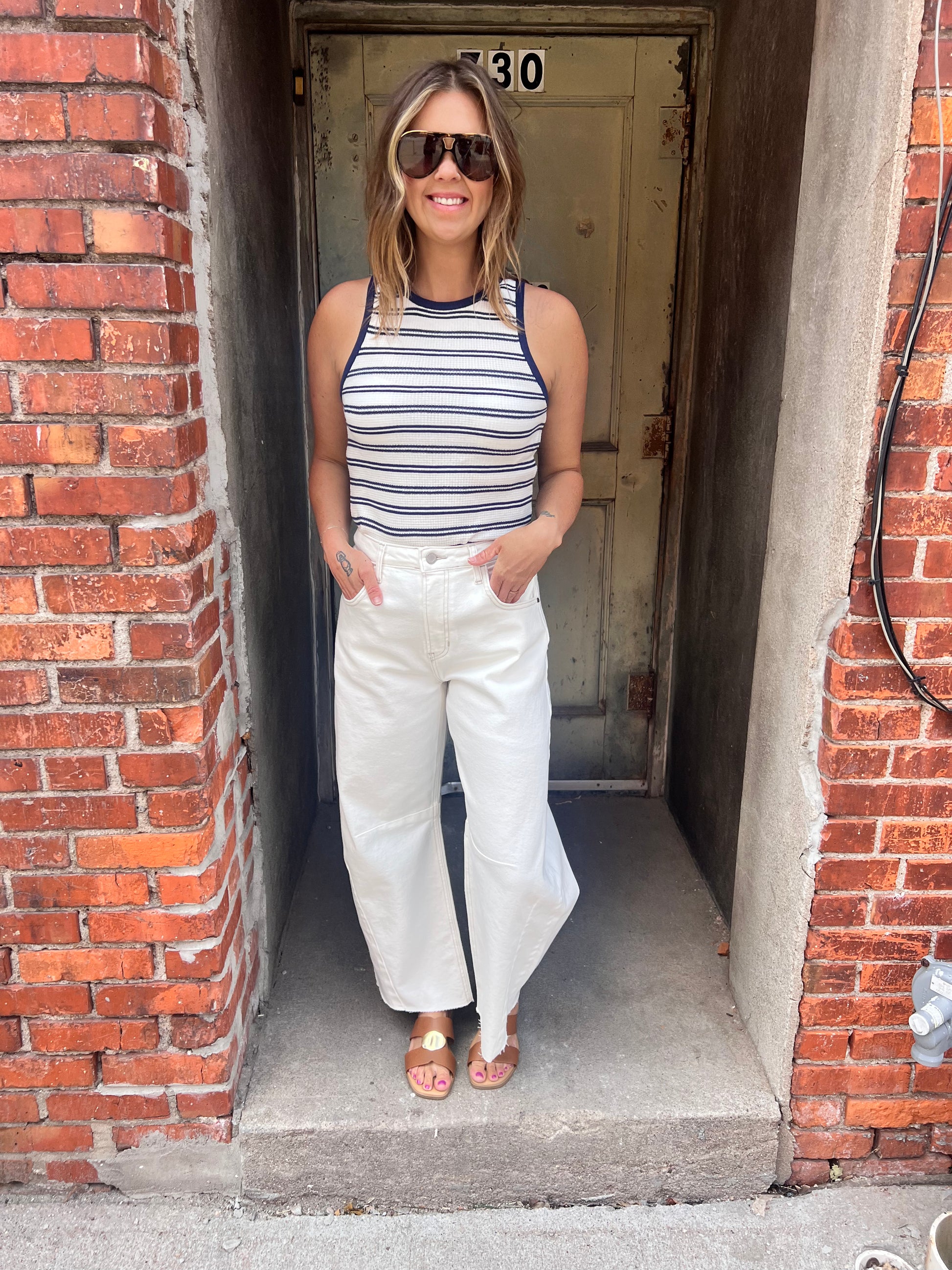 These jeans showcase a distinctive barrel silhouette that offers a relaxed, yet fashion-forward fit, perfect for embracing the season's laid-back vibe. The white color brings a fun, springy tone that feels both fresh and sophisticated, effortlessly complementing the blossoming hues of spring.