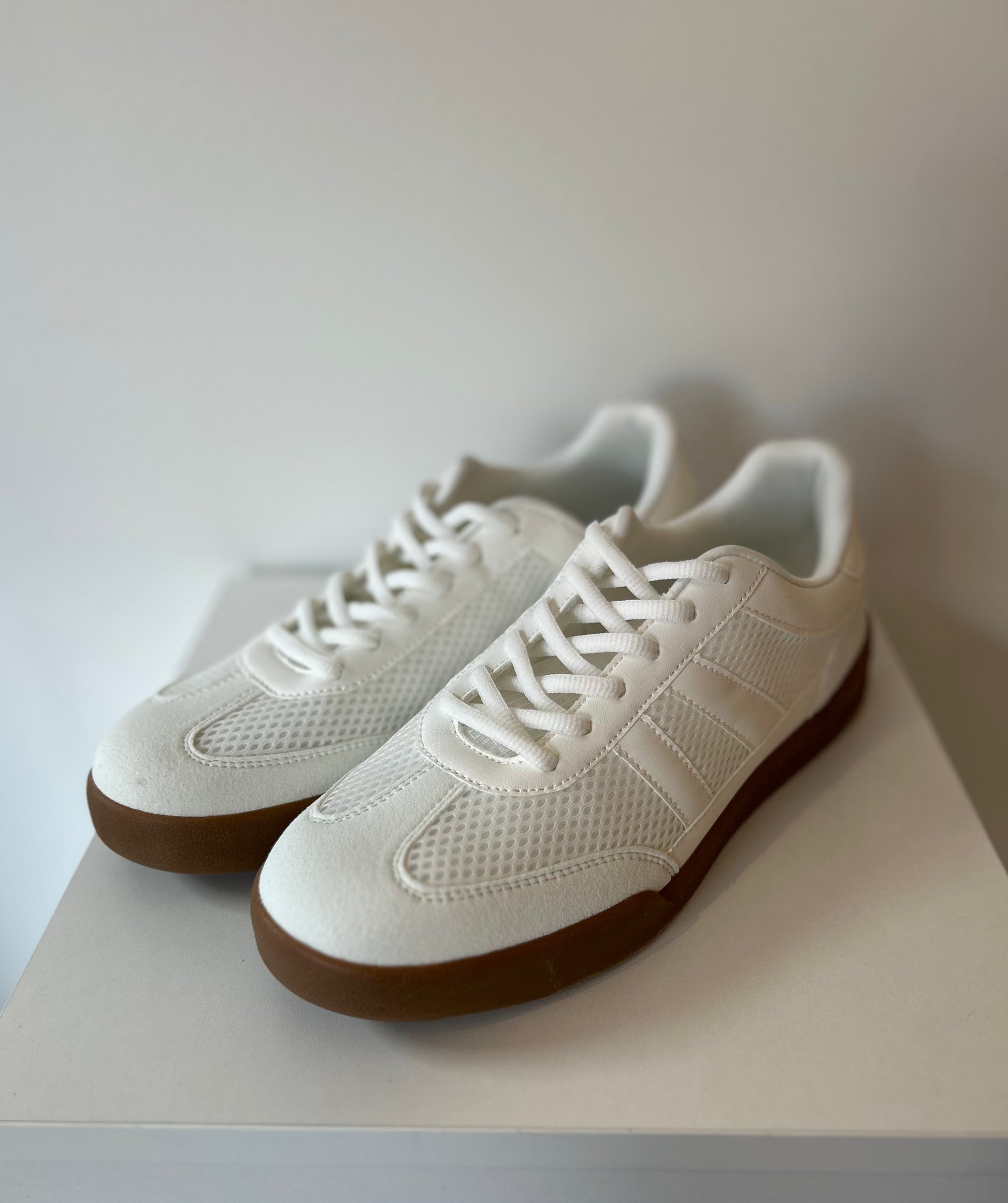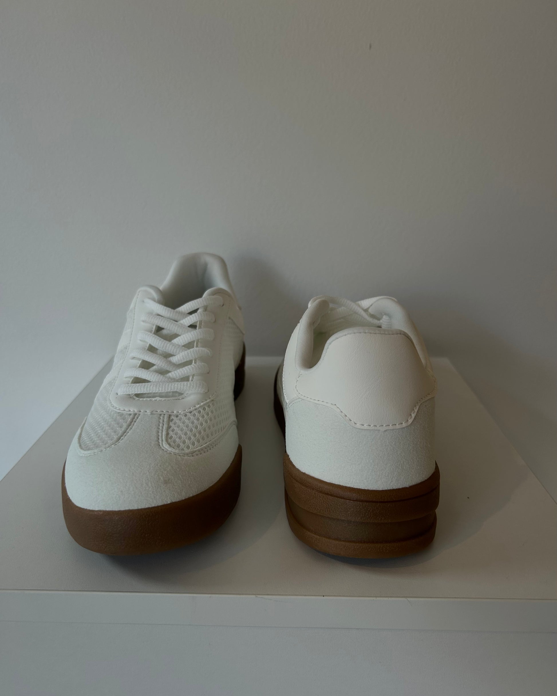 Step into effortless style with this clean white low-top sneaker that's ready for anything. Featuring a rounded toe and cushioned collar for all-day comfort, plus a grippy gum brown sole that keeps you grounded. The durable construction handles everyday wear like a champ, while the minimalist design plays perfectly with jeans, joggers, or your favorite athleisure pieces. Your new go-to casual sneaker awaits!